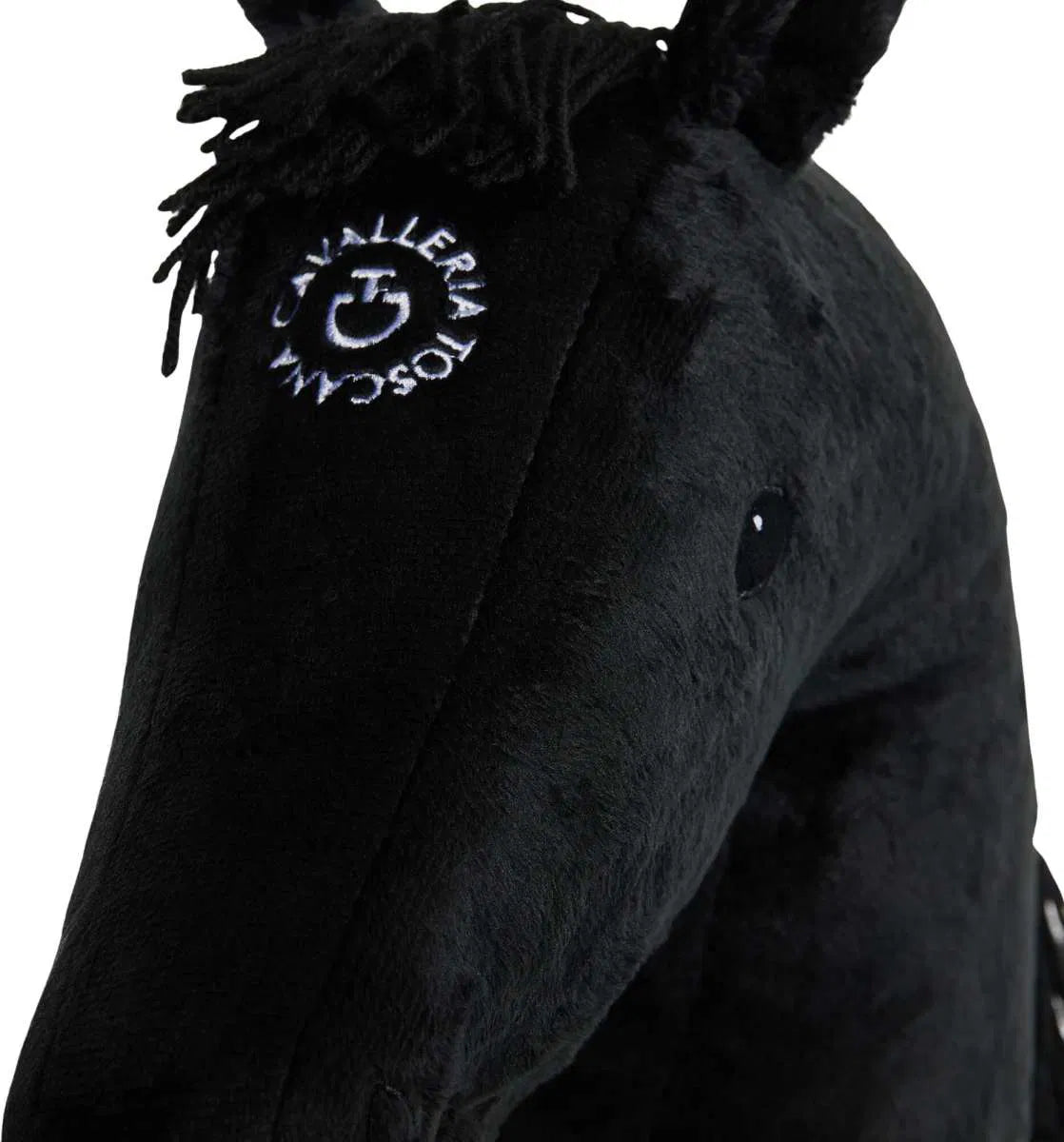 The Cavalleria Toscana hobby horse is the ideal companion for young riders and horse lovers. Made from soft black plush fabric with a cord mane, this toy is finished with finely embroidered details and a contrasting CT logo. The eyes feature detailed embroidery for a realistic look, while the sturdy wooden stick provides stability and durability during play. A playful yet refined accessory that brings the equestrian world into children's imagination — crafted with the quality and elegance of Cavalleria Toscana.