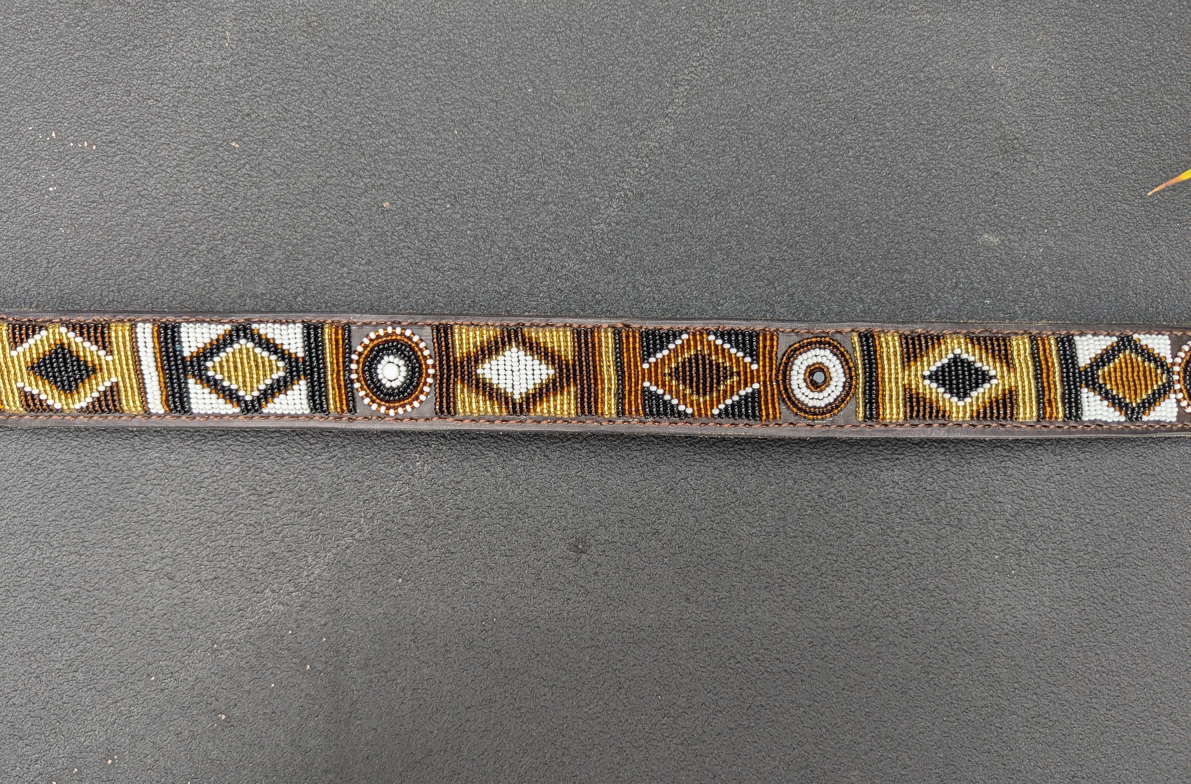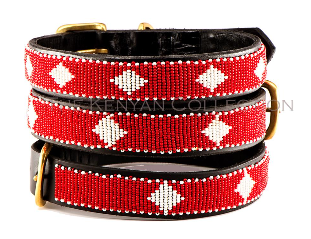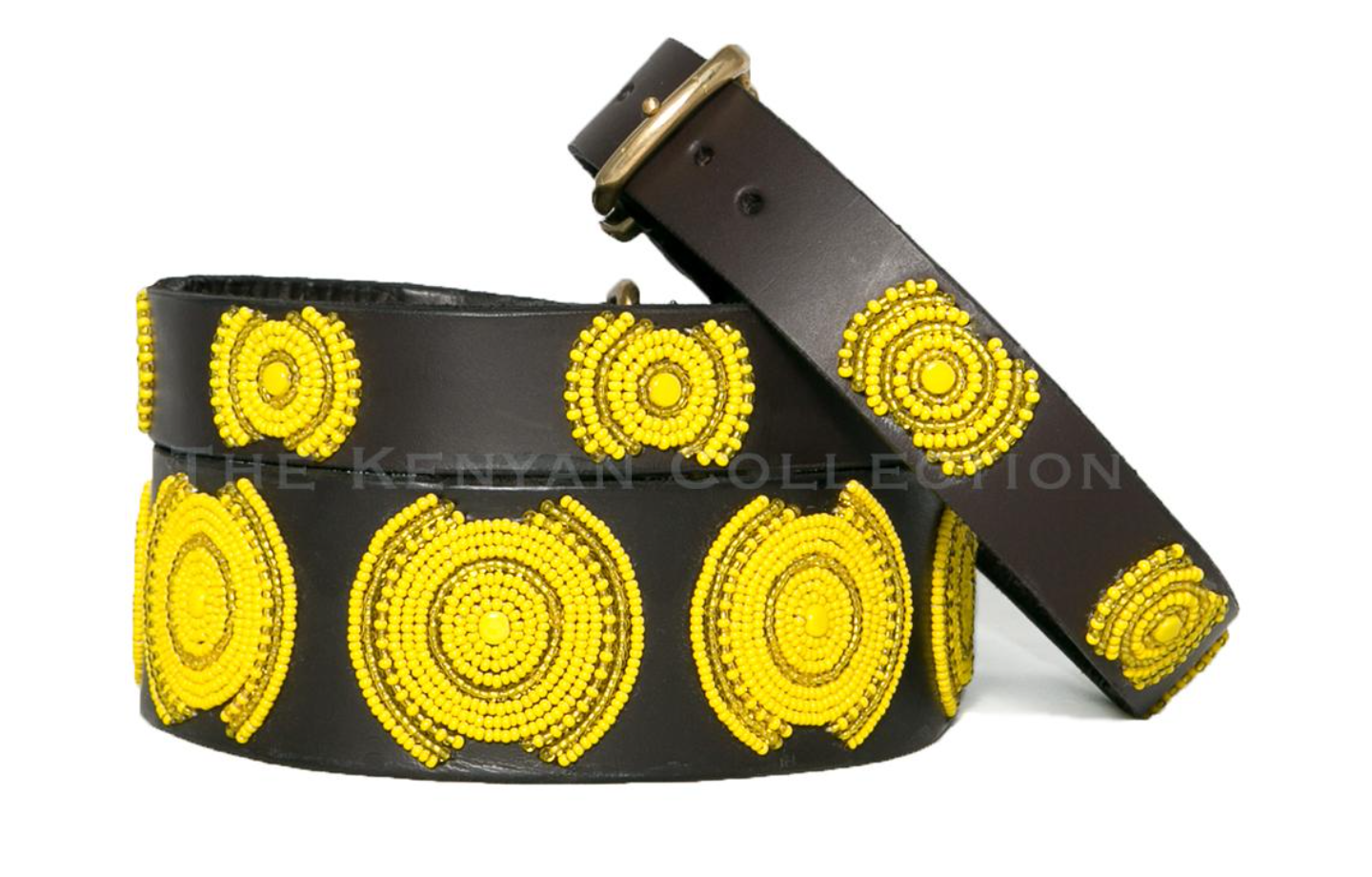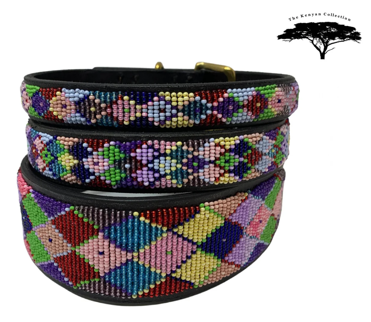Each creation is meticulously handcrafted by skilled Maasai Mamas using premium, durable leather, with hand-cast buckles and clasps. Crafting one collar takes a Maasai Mama about a day, while a belt requires two days of dedicated beading. The beads are carefully hand-sewn onto the first layer of leather, followed by the addition of high-quality hardware and a second leather layer, which is glued and stitched for added softness and durability.