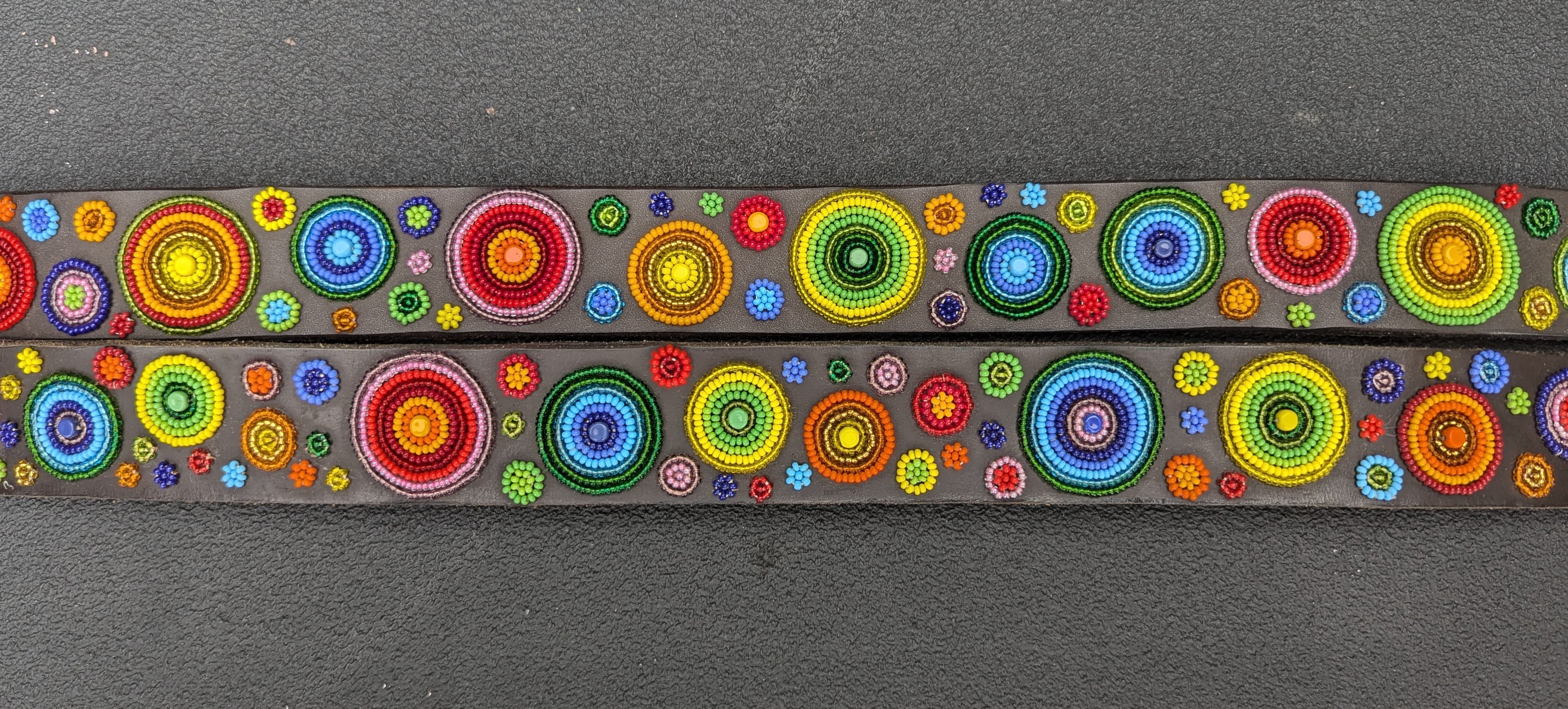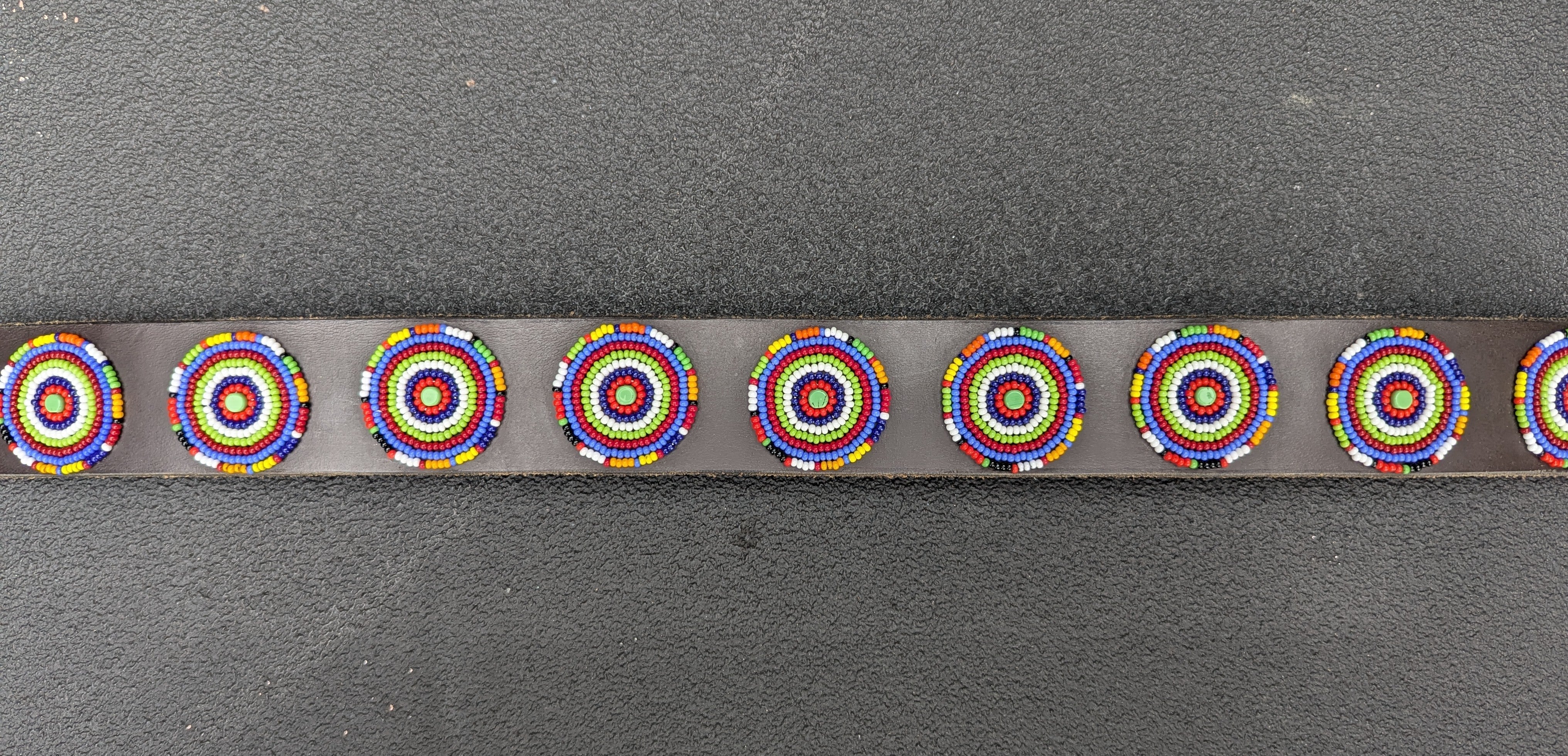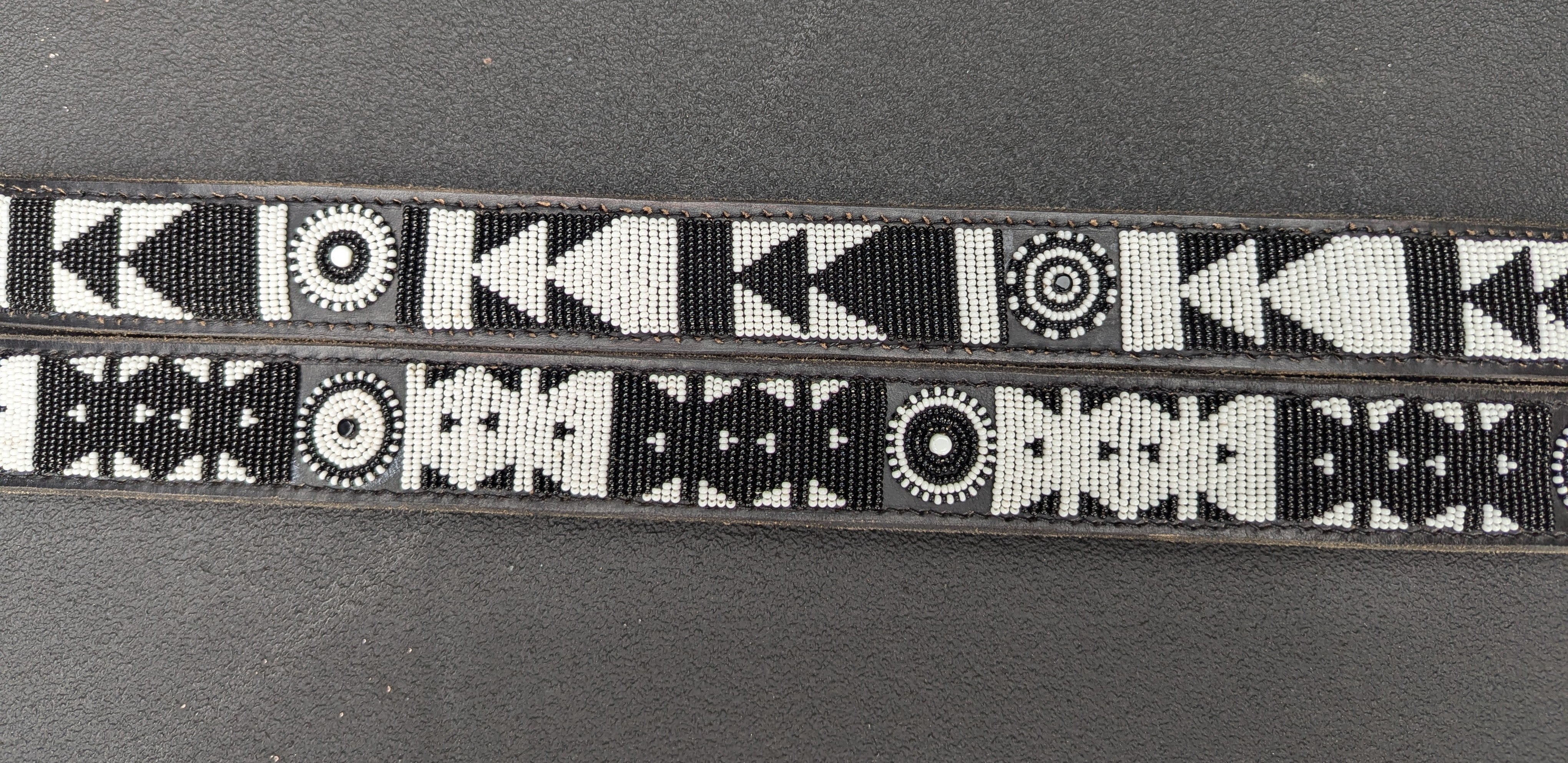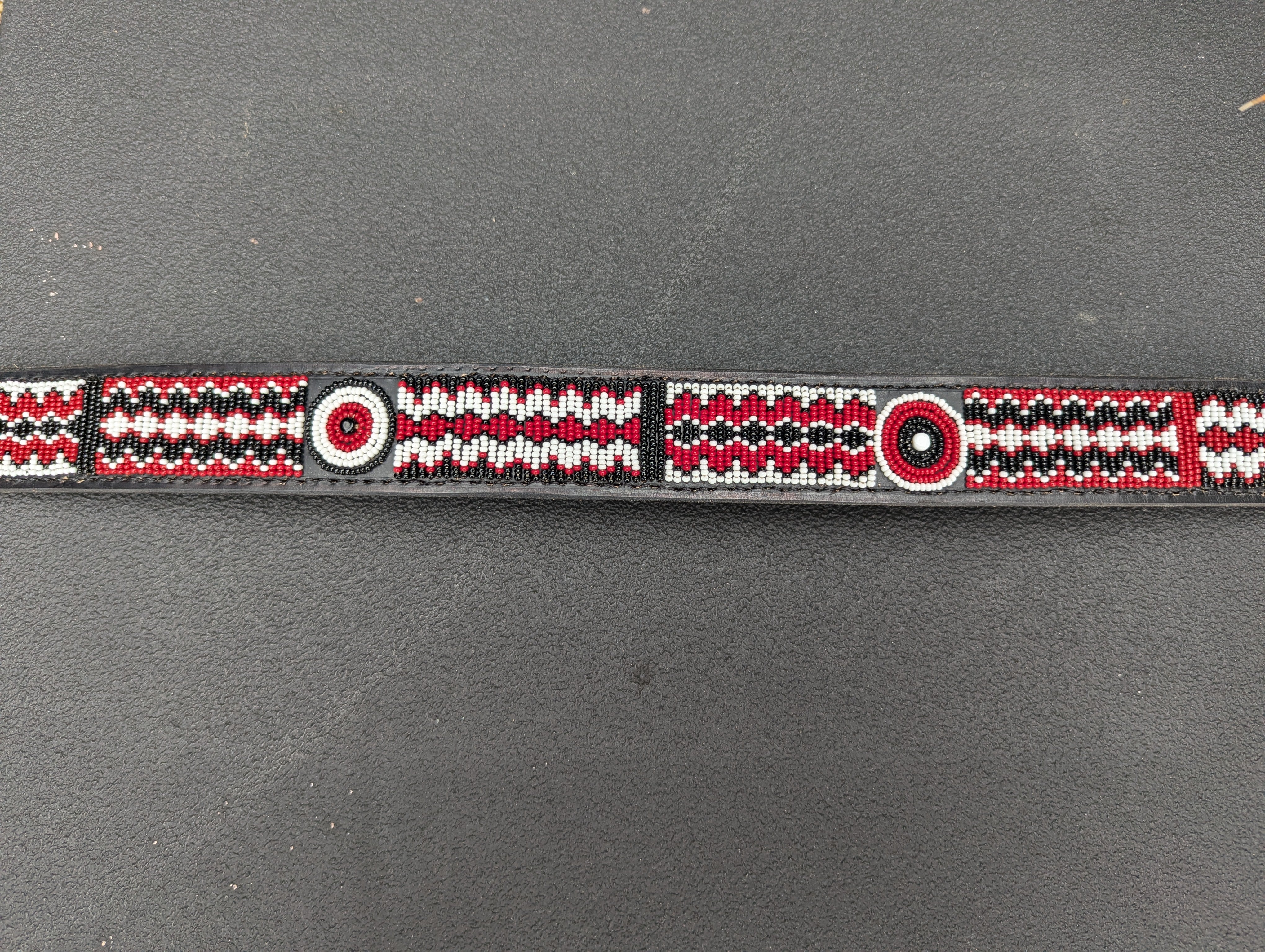 Each creation is meticulously handcrafted by skilled Maasai Mamas using premium, durable leather, with hand-cast buckles and clasps. Crafting one collar takes a Maasai Mama about a day, while a belt requires two days of dedicated beading. The beads are carefully hand-sewn onto the first layer of leather, followed by the addition of high-quality hardware and a second leather layer, which is glued and stitched for added softness and durability.
