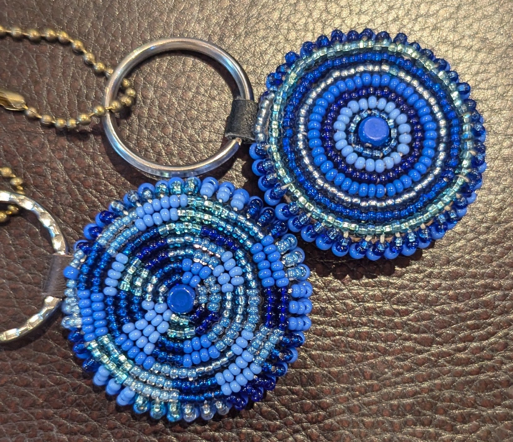 Handcrafted with care by Maasai Mamas in Kenya, each piece is uniquely beaded, ensuring that no two are ever the same. Add a touch of vibrant artistry to your everyday essentials with our Beaded Keychains. Each keychain features a unique beaded disc with a diameter of 1.75 inches and a sturdy ring measuring 1.25 inches. They're delightfully light and comfortable to hold, making them a joy to use-though they can handle a hefty load of keys if needed. Each keychain is one-of-a-kind, ensuring that no two are exactly alike.