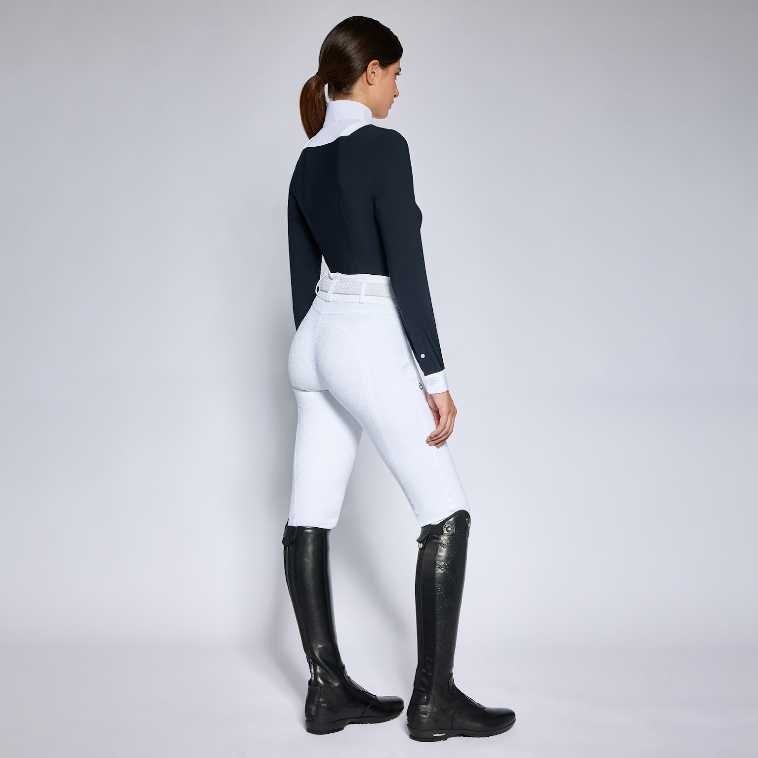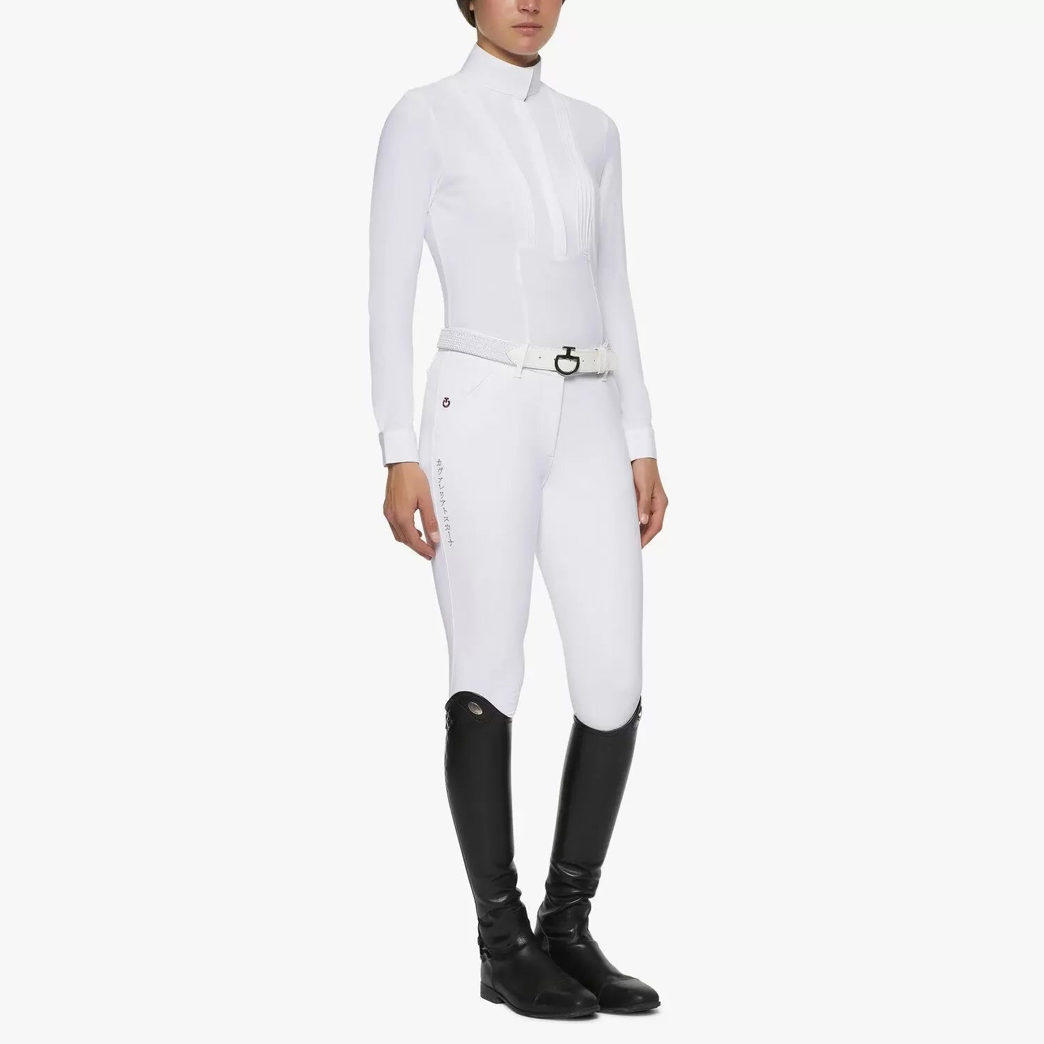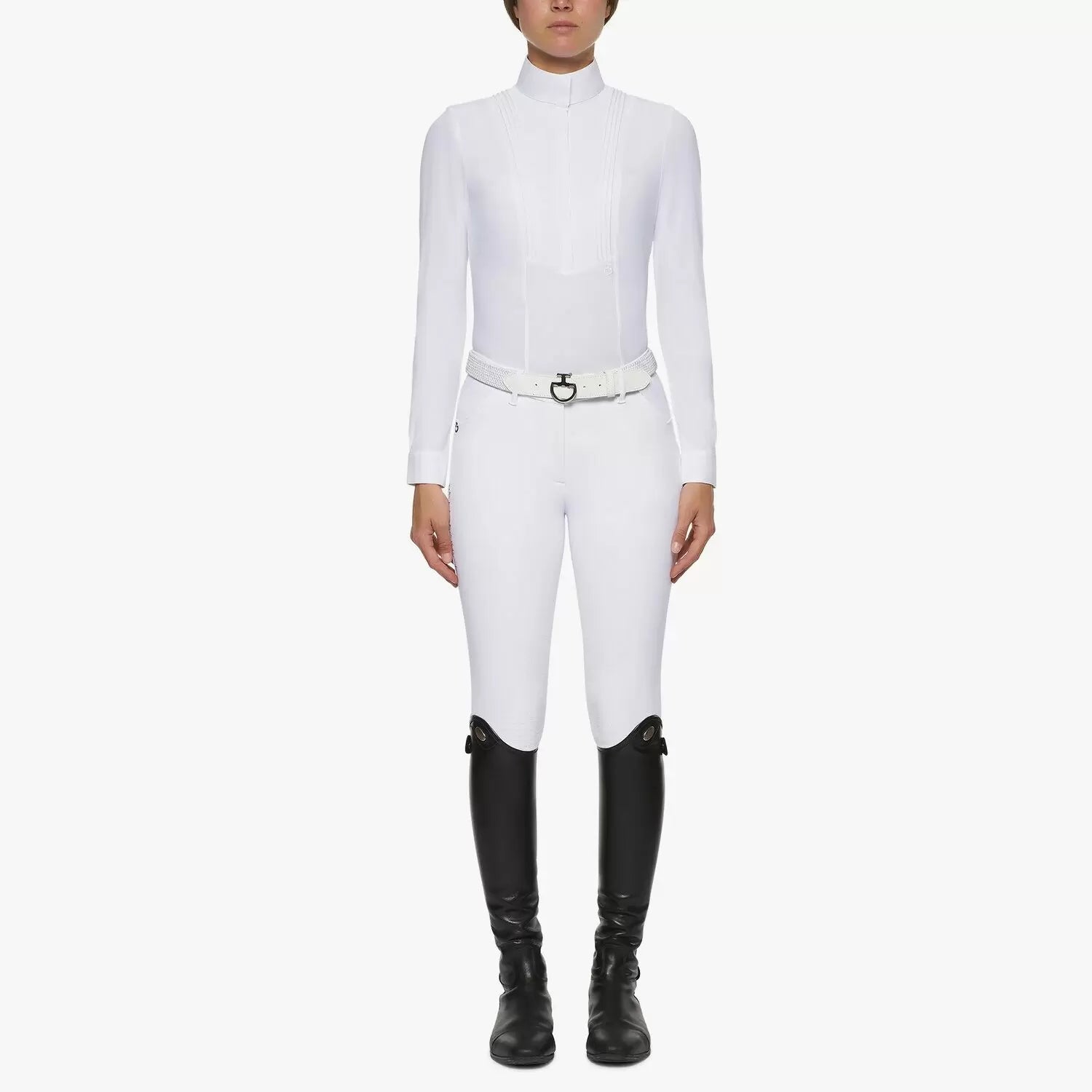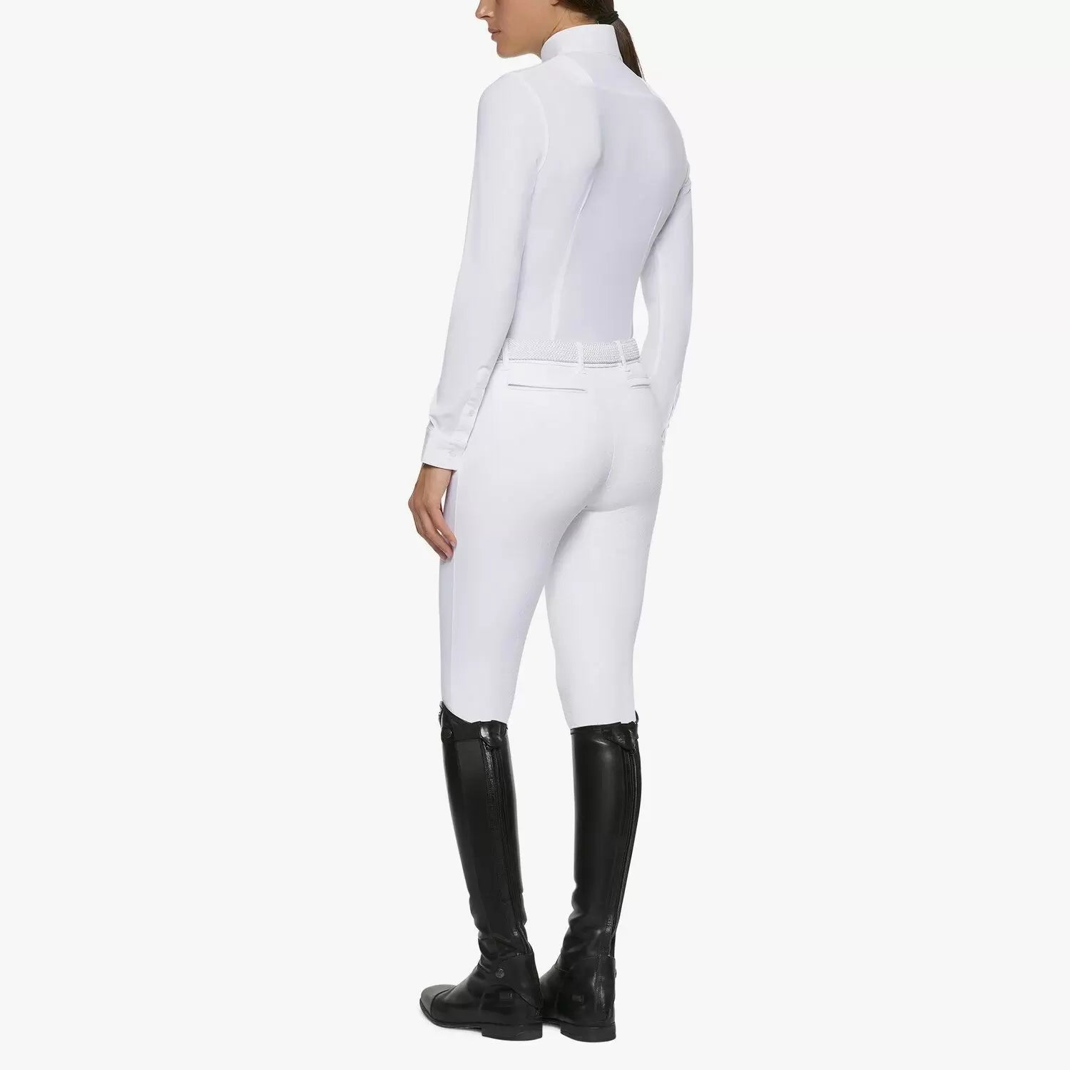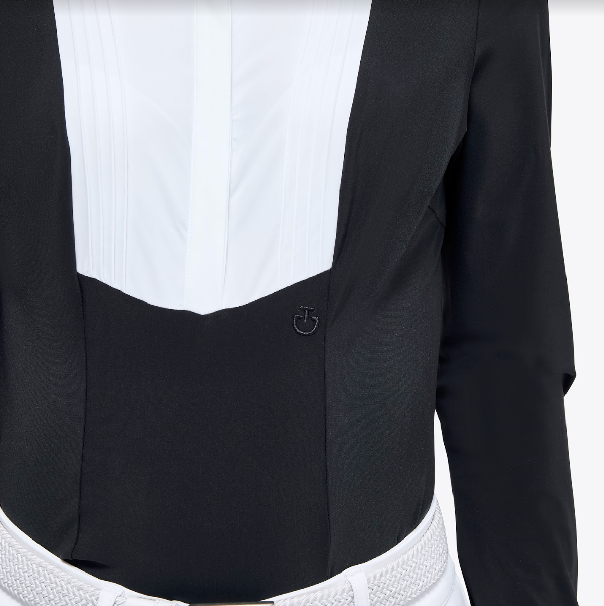 Ladies American Long Sleeve Show Shirt - this classic look competition shirt is ideal for any discipline, but the higher collar makes it perfect for the hunter ring. The elegant front detailing adds a subtle touch of class to the shirt, whilst the high quality Italian fabric ensures ultimate comfort, a perfect fit and high performance.