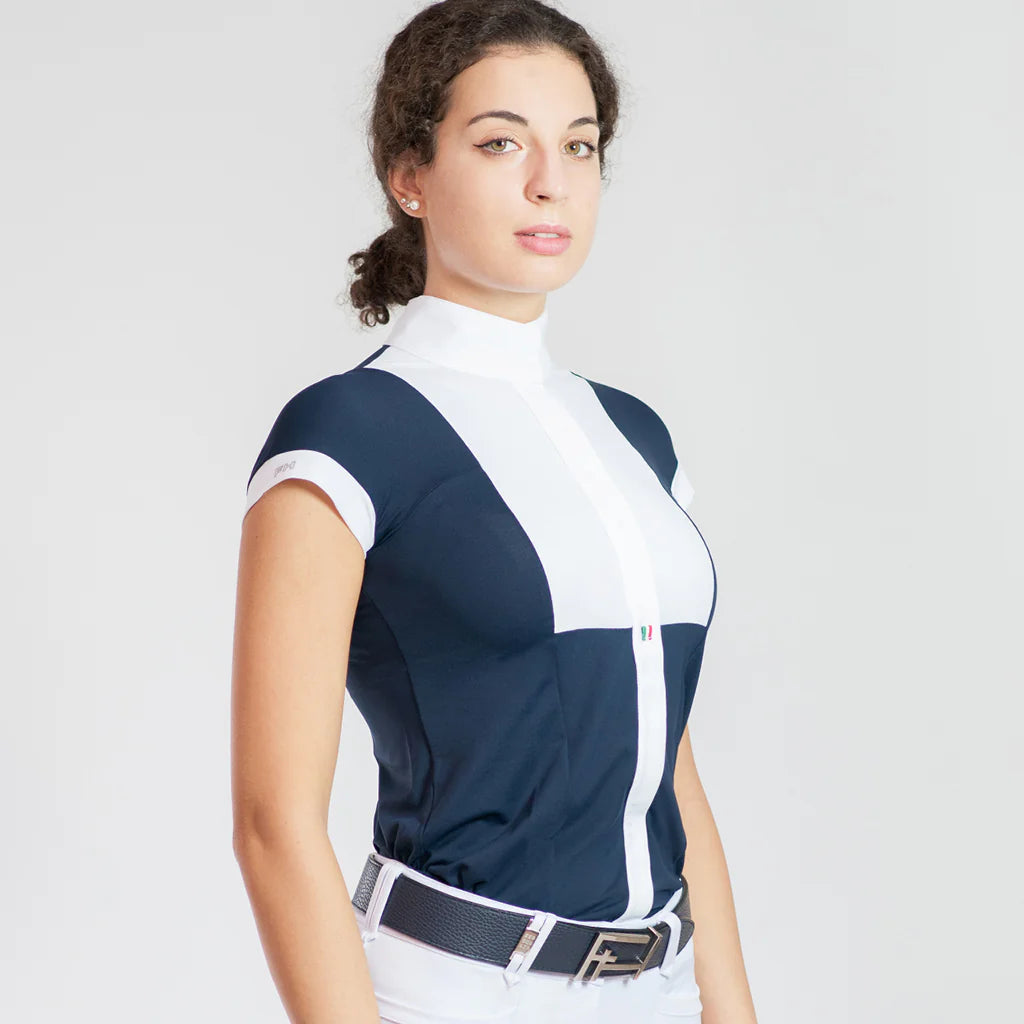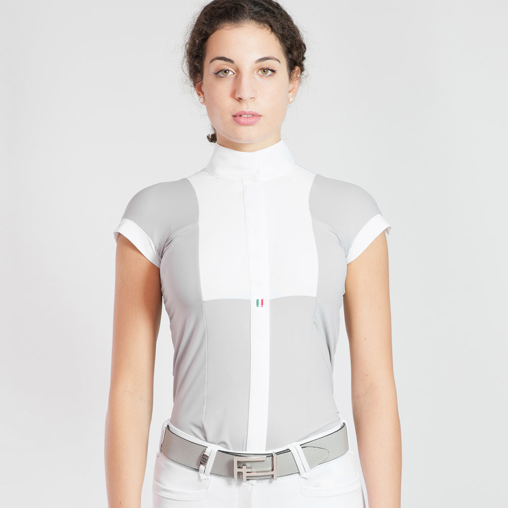 ARIA combines an innovative and modern fabric with a classic equestrian style in an elegant, comfortable short-sleeved competition show shirt. Suitable for all seasons thanks to its breathability, silky moisture-wicking feel, and UV protection.