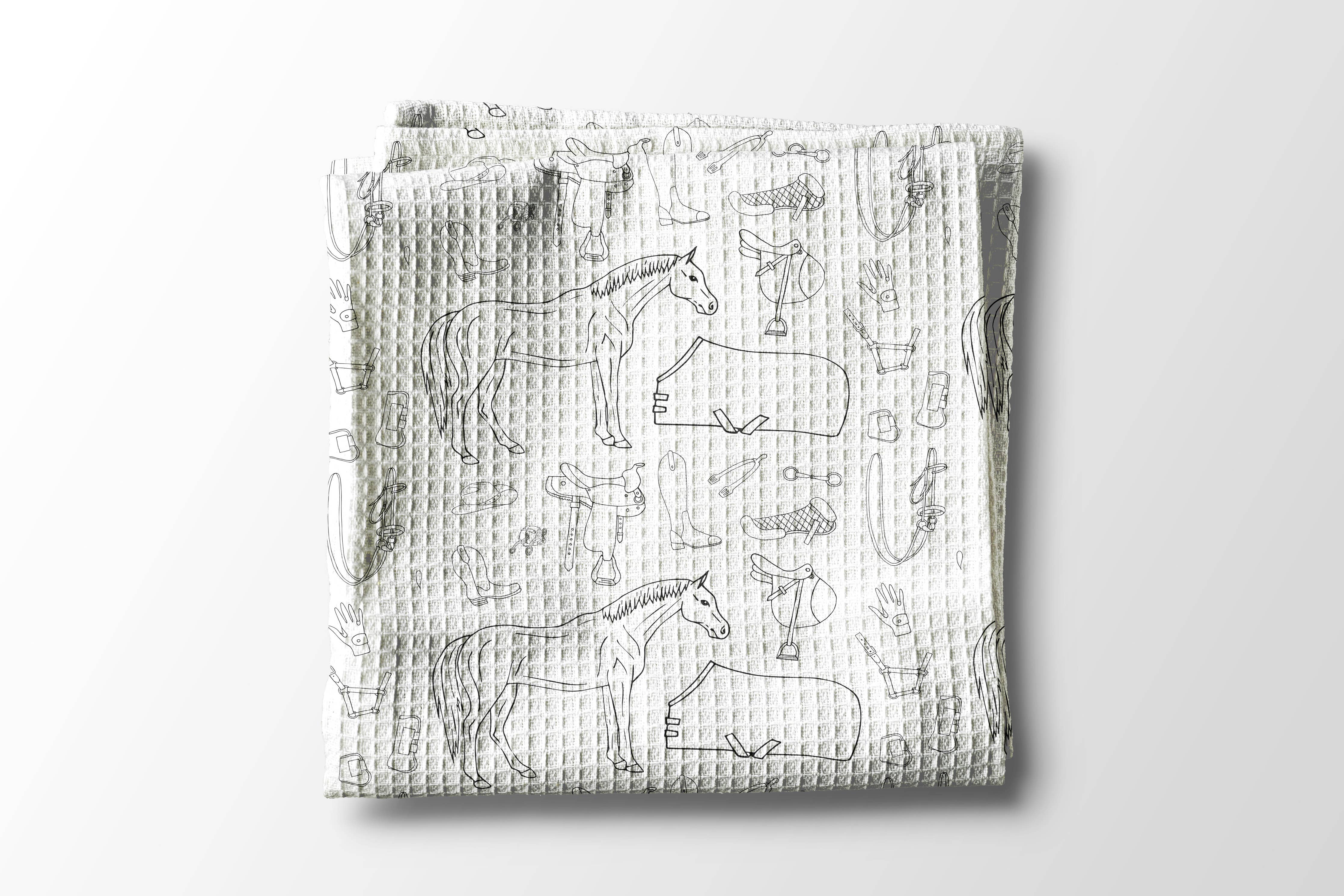 Horse Pony Equestrian Tack Kitchen Towel Waffle Gifts Farm