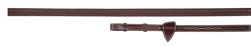 The Dy'on® Rubber Reins are made of English leather with raised, fancy-stitched fronts and extra supple, pimpled rubber for grip. It has brass hardware to match any of the Dy’on flash or Figure-8 bridles.