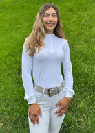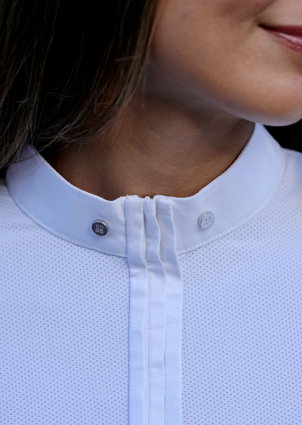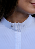 A stylish take on the white competition shirt, Paola stands out with a pleated front and hidden zipper.