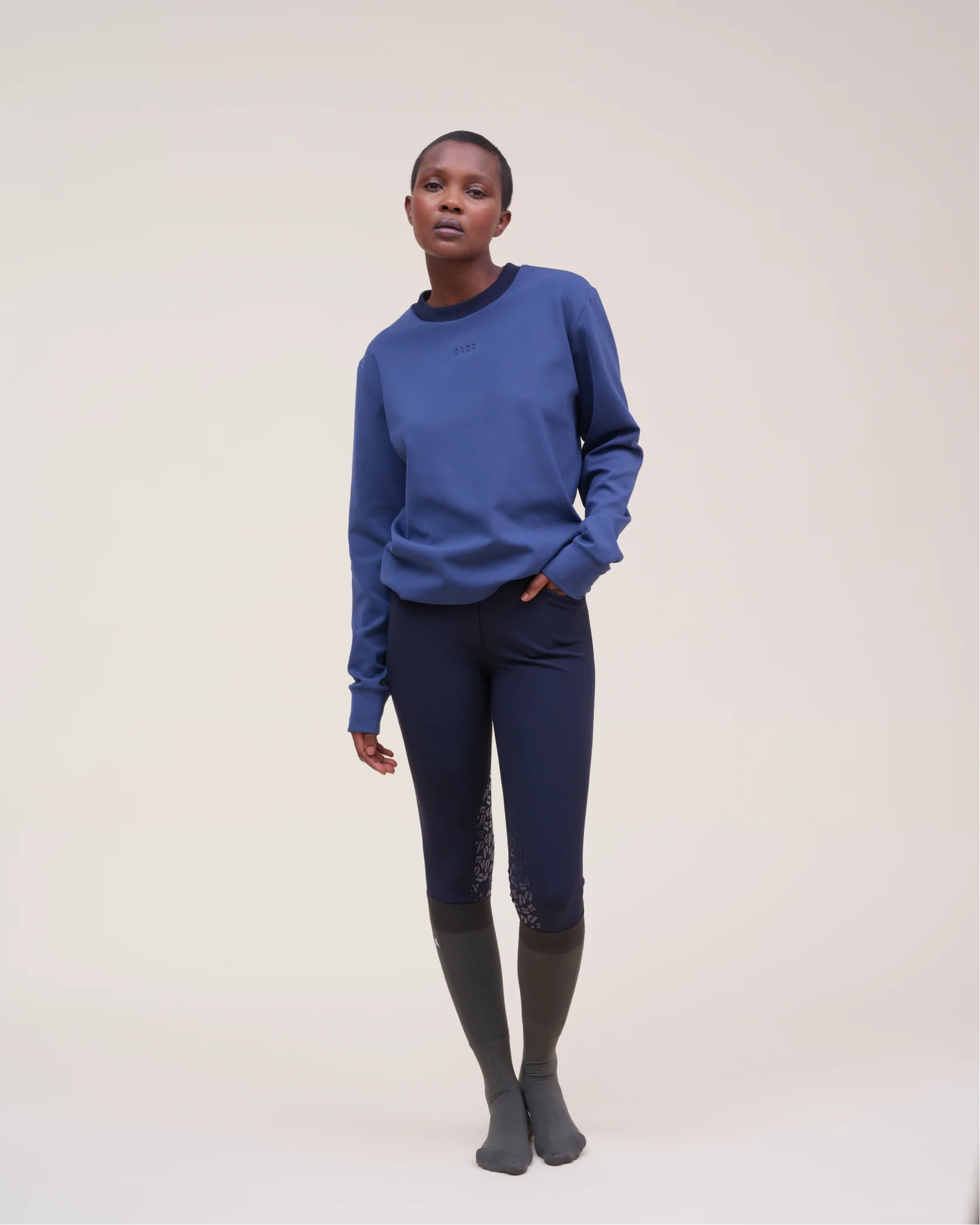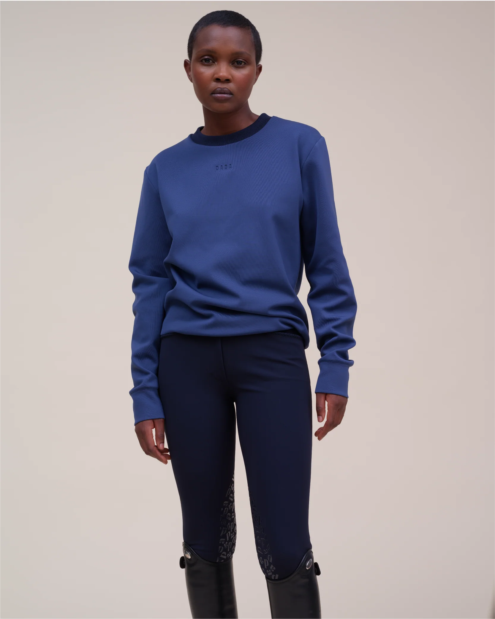 A comfortable piece with a sportswear look. This sweatshirt has been designed with a round ribbed neckline. For greater comfort, we have added a yoke to the cuffs and bottom of the garment. The Dada Sport monogram is affixed as a signature on the left chest for the black and forest colors and the DADA logo embossed on the front on the bronze and Baltic versions.