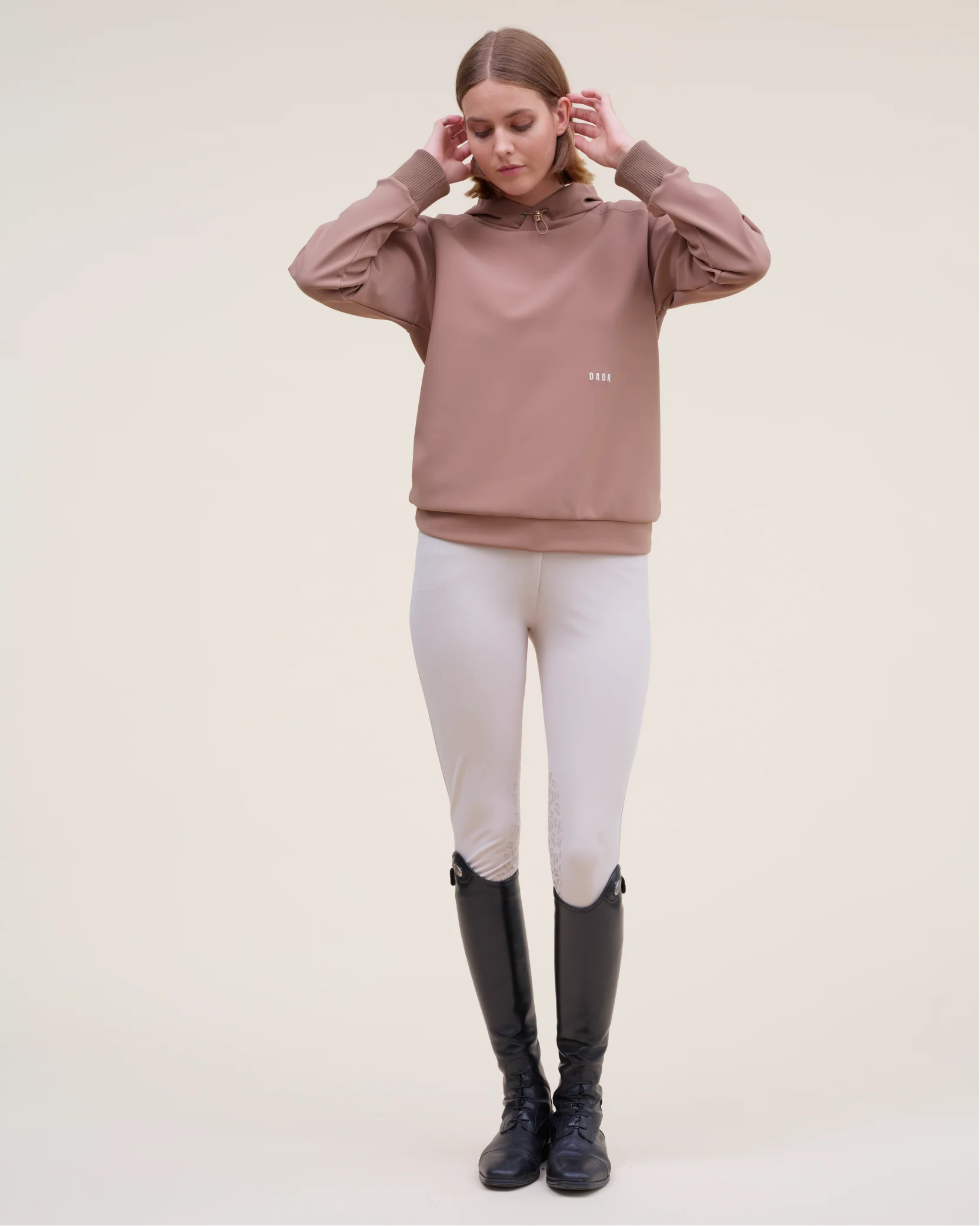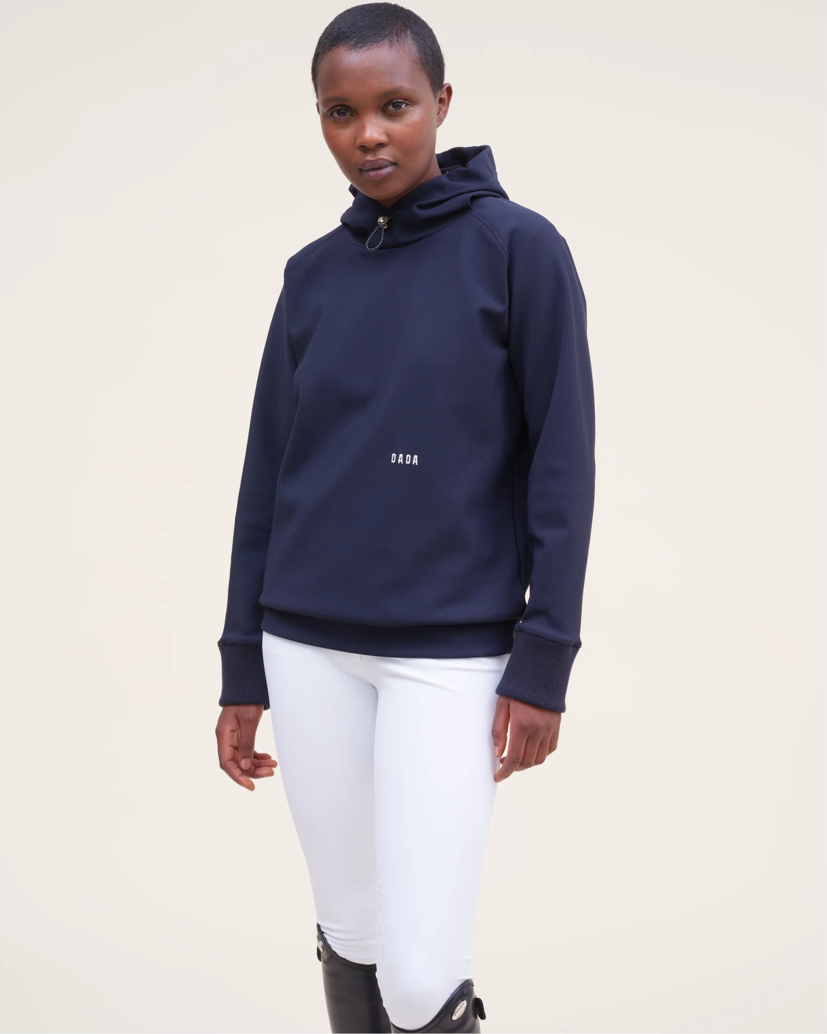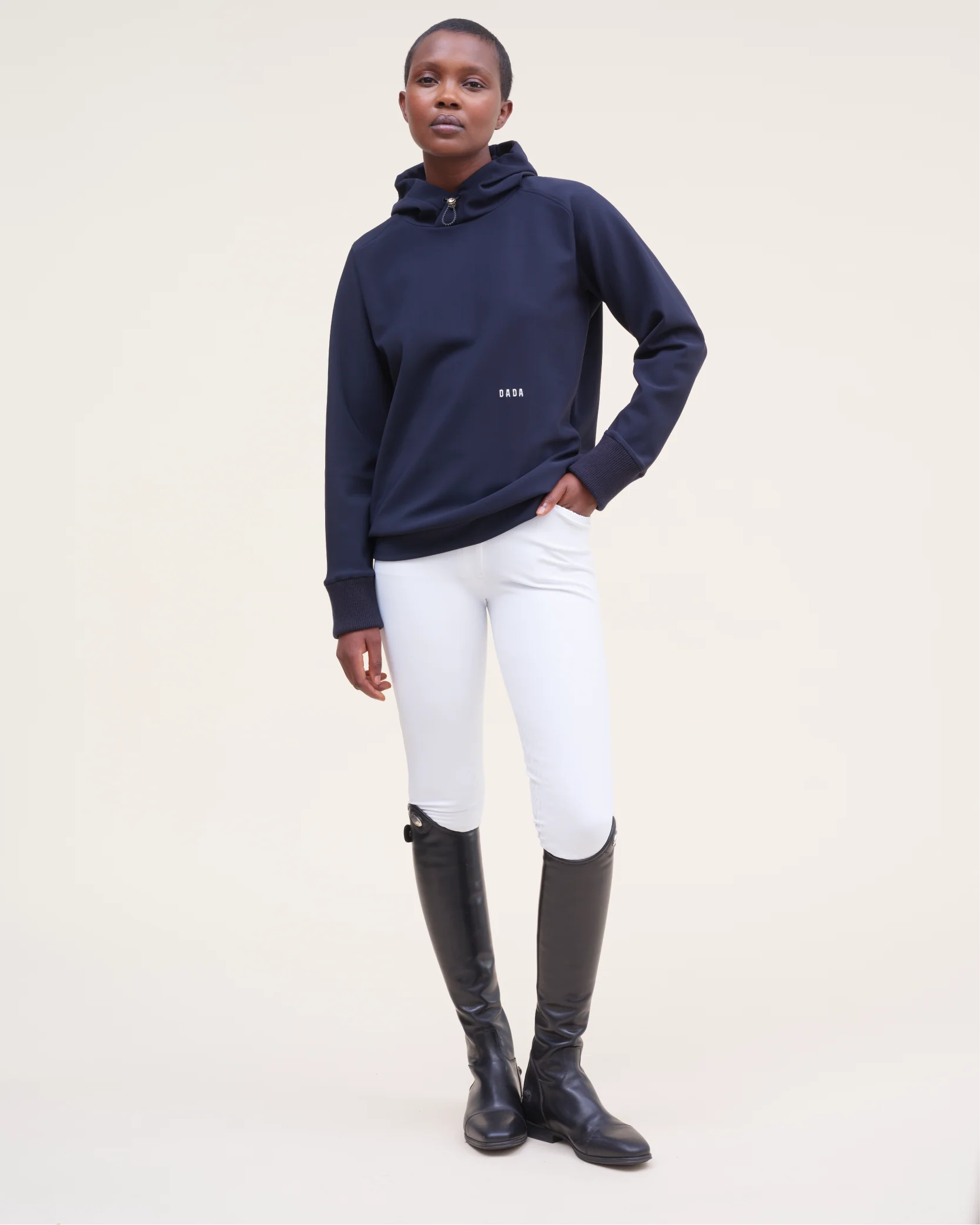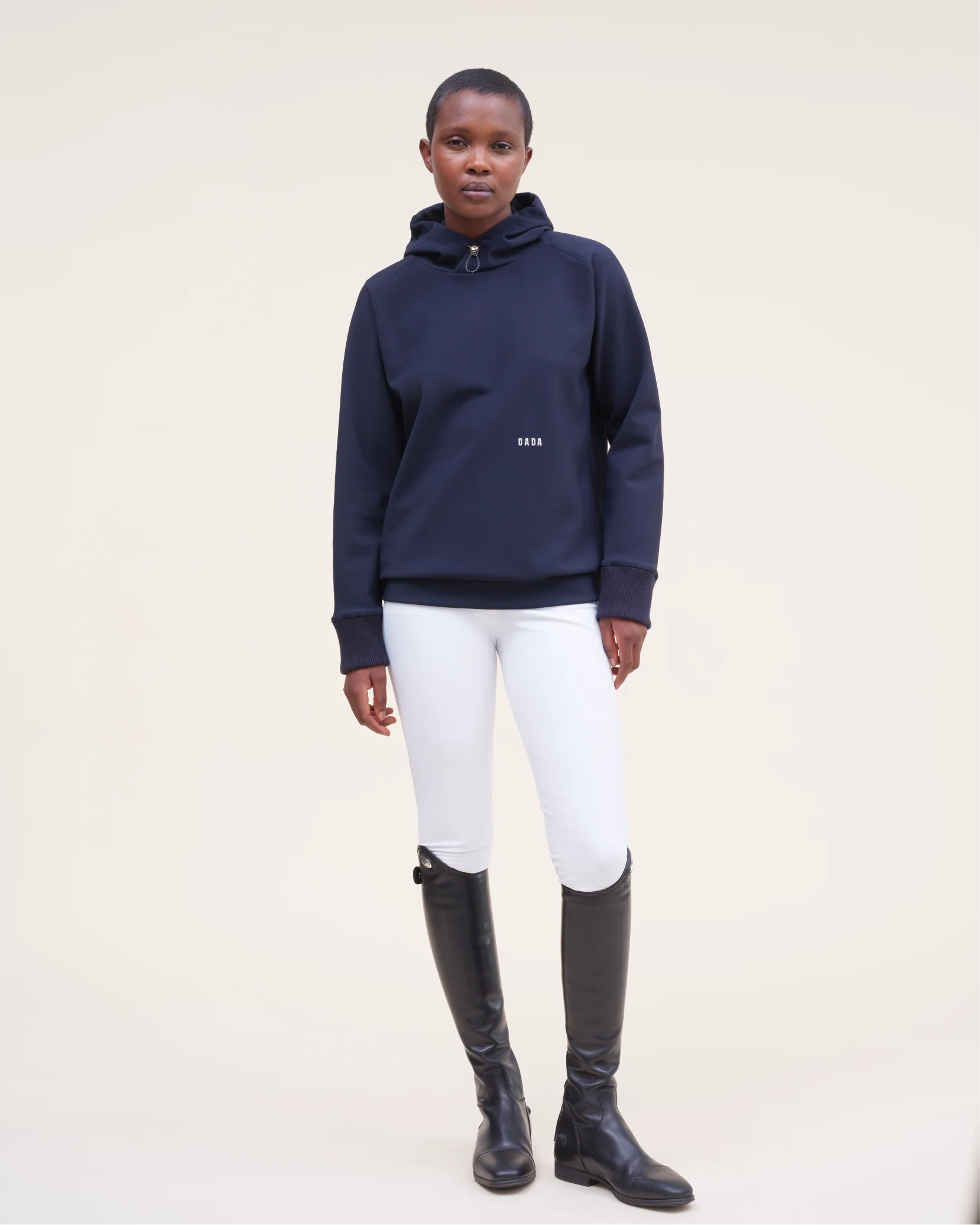 Careful tailoring, classic cut and soft, technical material make this sweatshirt a must-have in the DADA collection. We designed this loose sweatshirt to offer maximum comfort. On the practical side, the hood is adjustable thanks to a tone-on-tone elastic cord, speckled ecru, and tightened by a light gold metal stopper. The choice of colors makes it very easy to combine with the Big Ali jogging.