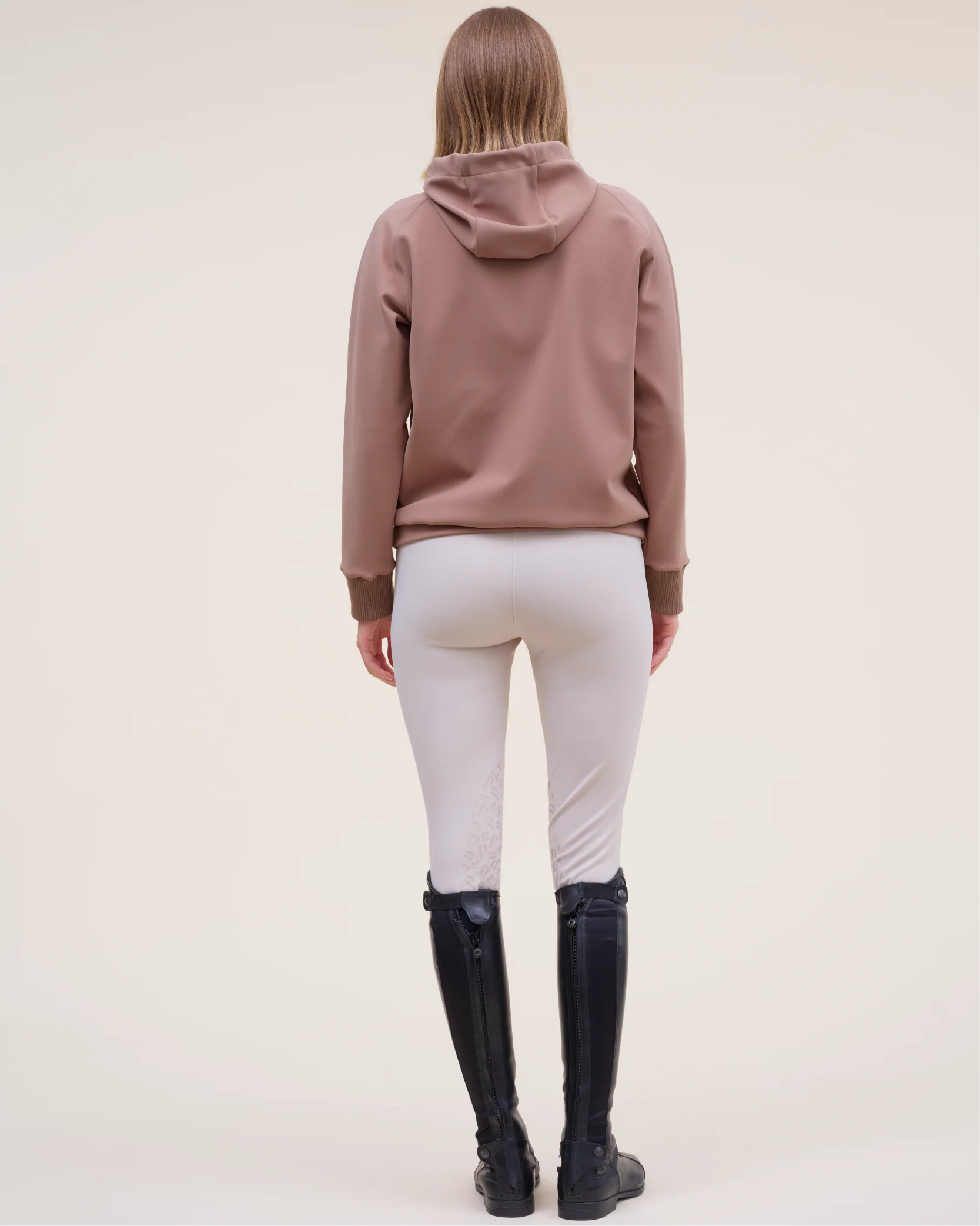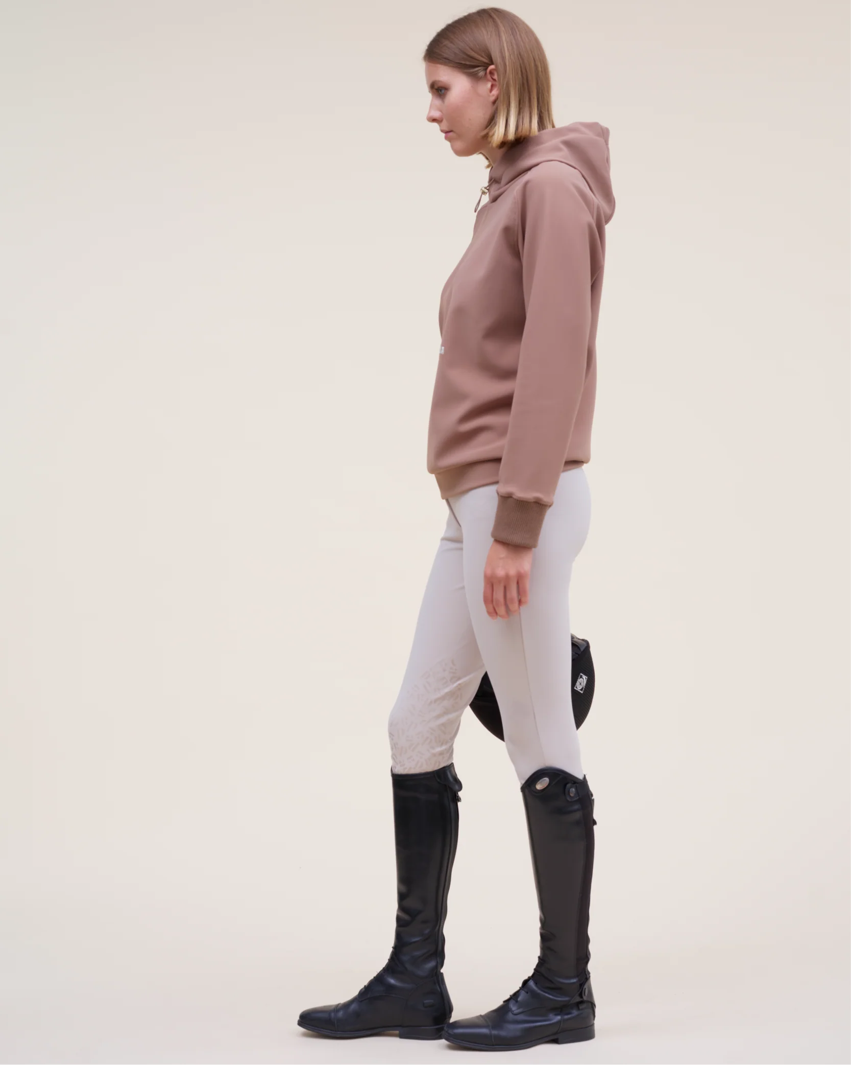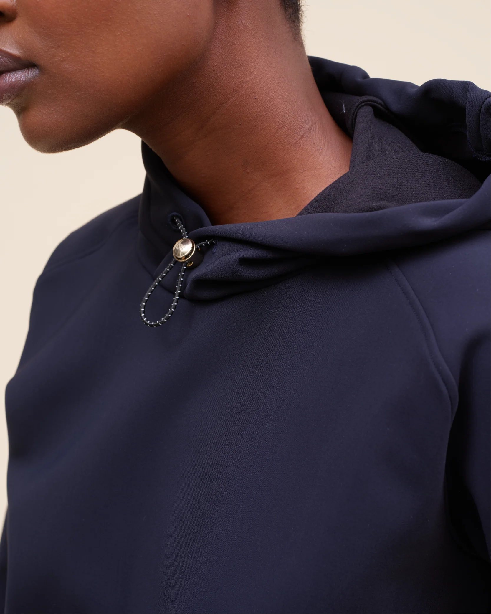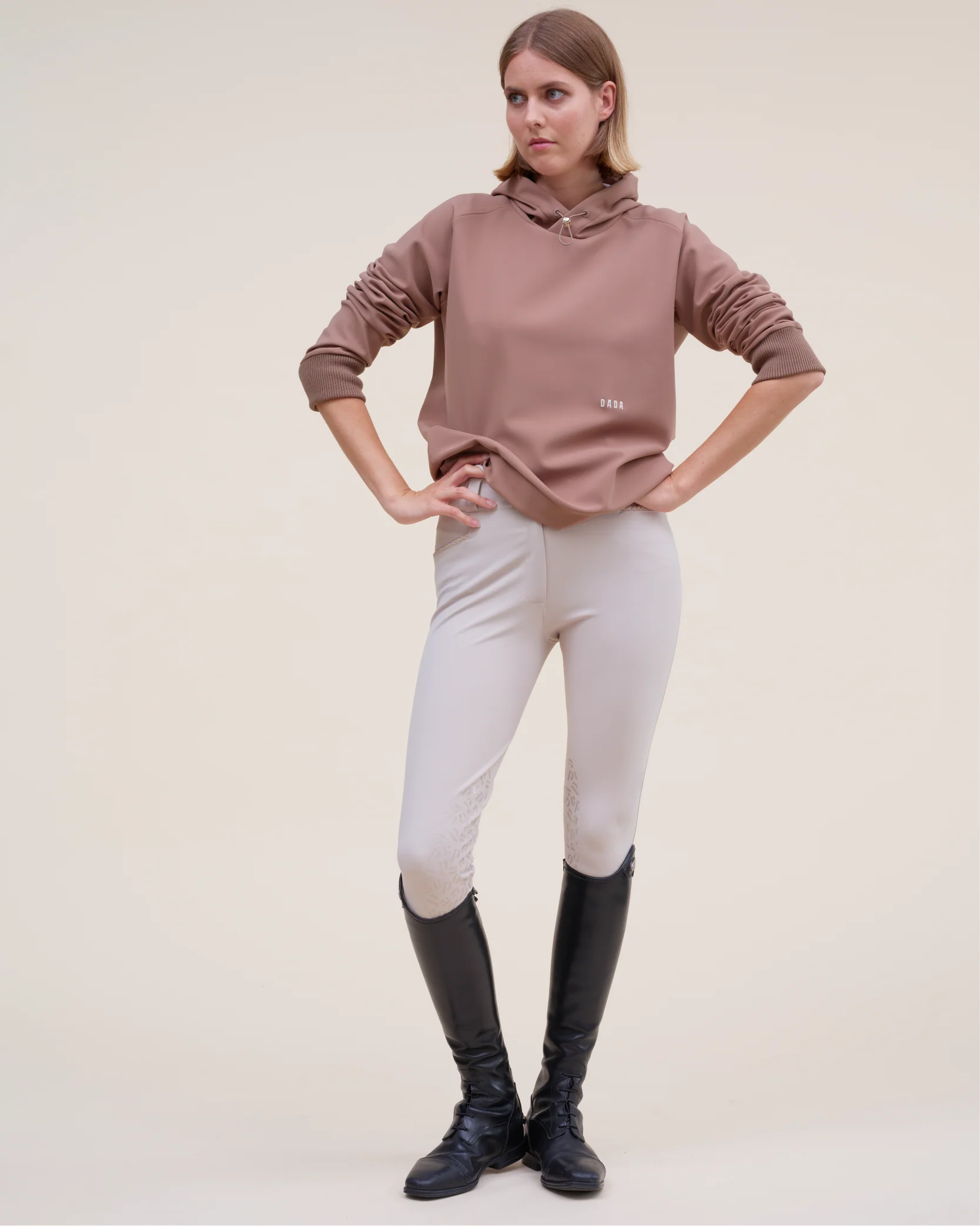 Careful tailoring, classic cut and soft, technical material make this sweatshirt a must-have in the DADA collection. We designed this loose sweatshirt to offer maximum comfort. On the practical side, the hood is adjustable thanks to a tone-on-tone elastic cord, speckled ecru, and tightened by a light gold metal stopper. The choice of colors makes it very easy to combine with the Big Ali jogging.