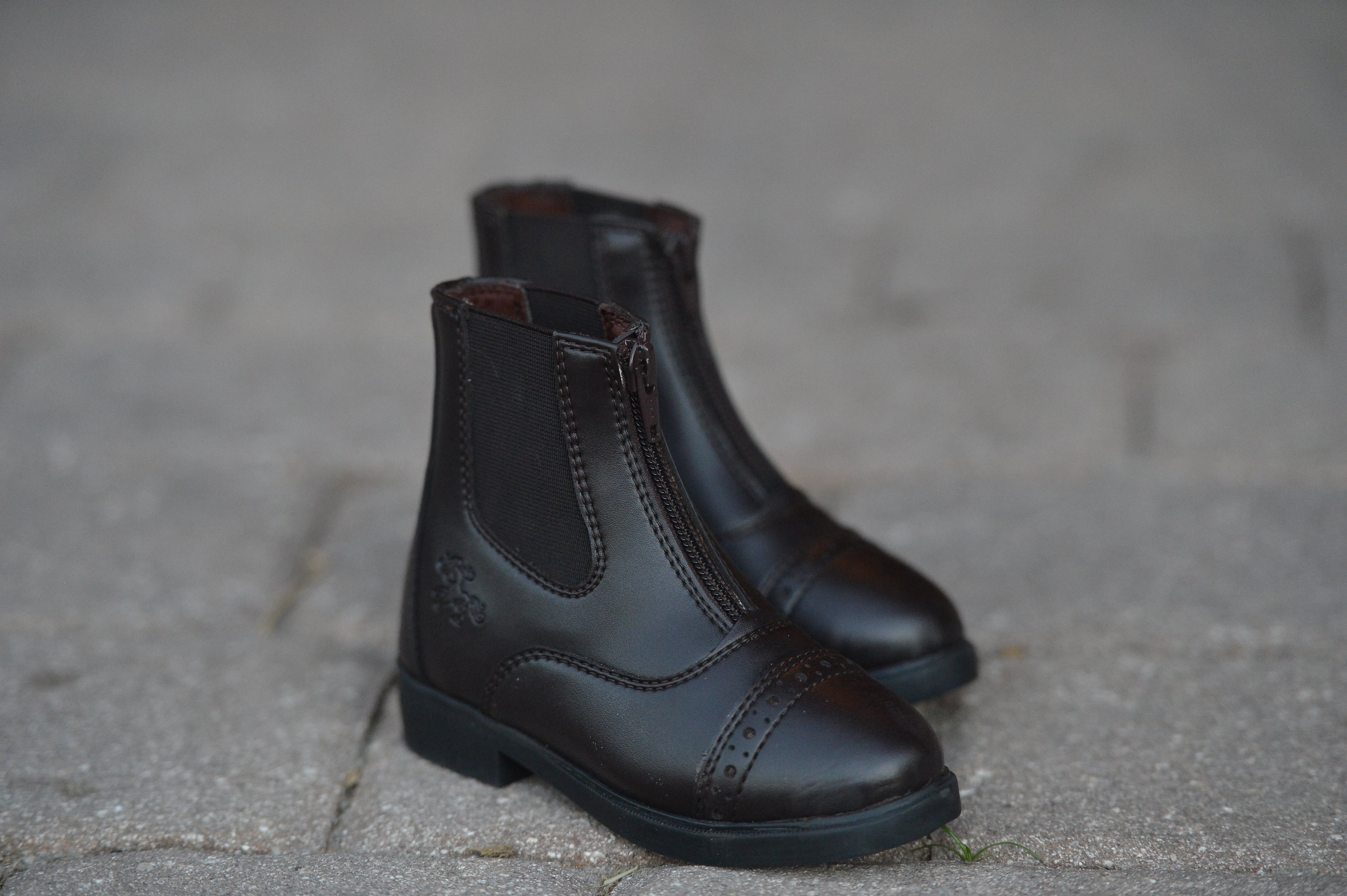 Our Paddock Boots are built to last through days filled with riding, grooming and barn chores! Synthetic leather that doesn’t mind getting wet or dirty while stylish enough for the show ring. Priced right for growing feet!