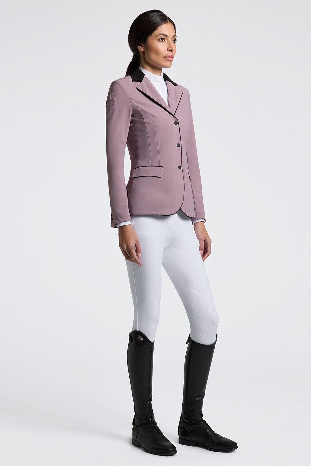 The jacket features a classic and fitted design, refined by a collar and alcantara piping in contrasting color. It comes with two front pockets, three buttons fastening, and a subtle embossed logo on the shoulder. The elegant cut is combined with the technical 4-way stretch jersey, which provides breathability and water repellency. It fits perfectly to the body, following through your movements.