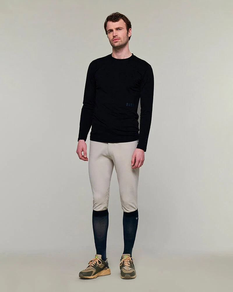 Description : Like a second skin, this Fellow long-sleeved T-shirt completes the athlete's wardrobe to face the freshness of the morning or the cold temperatures of winter. The color palette Fellow is available in English green, black and storm. Design This long-sleeved t-shirt has been designed with a warm, soft and breathable technical fabric, which makes it extremely pleasant to wear. This piece is identified by its round collar, its straight cut and its topstitching at the bottom of the collar, on the cuffs and at the bottom of the garment. The subtle placement of the Dada Sport logo transfer on the left of the waist and on the bottom of the left sleeve completes this piece. Manufacturing Italian fabric - Manufactured in Portugal. This Italian technical fabric has been specifically developed to offer insulating properties. Its brushed reverse helps retain body heat while wicking away perspiration to the outside. These properties make it extremely pleasant and soft to wear. It also protects you from UV rays, is breathable and dries quickly. Size advice We recommend taking your usual size. If you have any doubts, you can also ask us for advice by contacting us directly on the chat. How to care for your Fellow long-sleeved t-shirt? We recommend machine washing inside out at 30°C maximum with a spin speed of no more than 900 rpm. It is then best to let the hoodie dry on a hanger in the open air. Definitely no tumble drying or dry cleaning. You can iron it at low temperature on the reverse side.