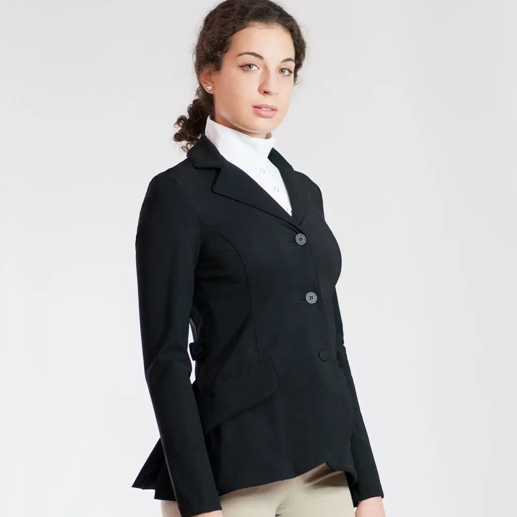 ALIKA is a beautifully styled competition jacket for every rider who loves comfort in movement and elegance in the ring. The fabric of the For Horses jacket is designed to ensure maximum performance and comfort thanks to the high elasticity, breathability, silky feel, and lightness. Easy to pack and care for so it’s always ready for showing. The contrast piping, three buttons and angled pockets make this a fashionable addition to any riding wardrobe. Ideal for Showjumping, Dressage and Amateur riding.