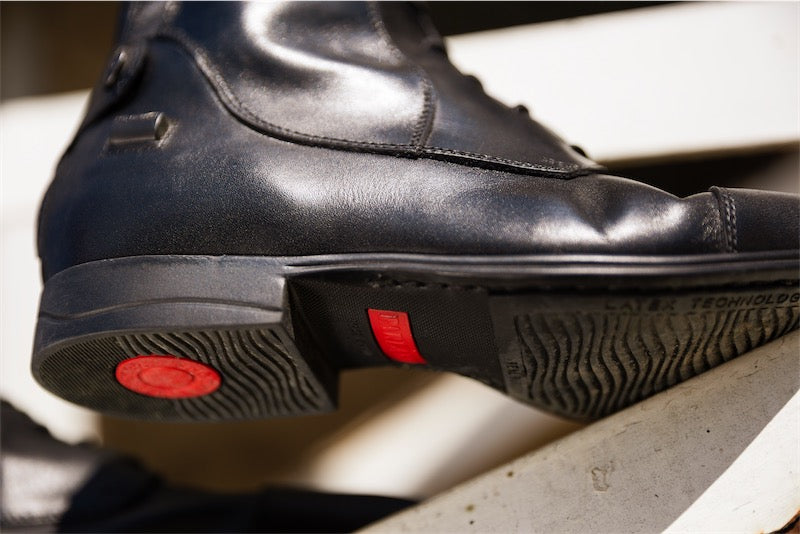 While the gorgeous calfskin leather exterior of this Parlanti boot is globally known and recognized, the real upgrades begin at the foot. It has a compact square toe design, and the sole and heel have been modified to take your riding to the next level.