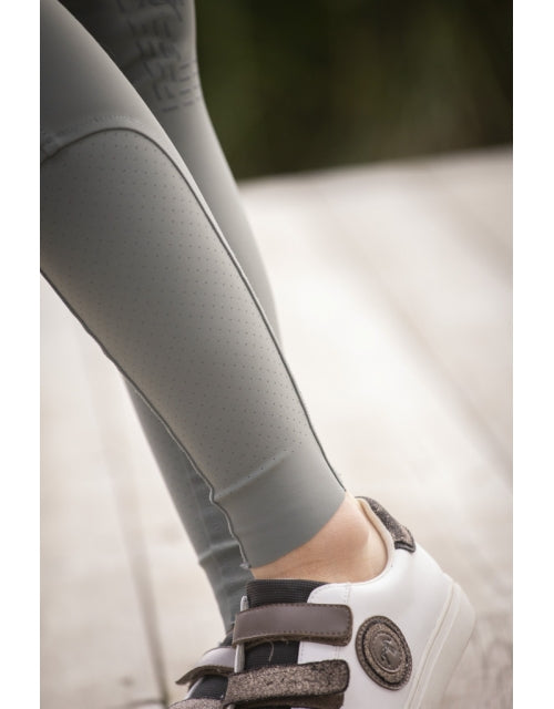 The Majestic breeches are made from soft, lightweight, and comfortable fabric. Unique in design, the Pénélope logo is perforated on each of the front pockets. The lower leg is perforated for breathability and features a seamless finish for added comfort. Inside the knees, the Pénélope logo appears in silicone grip, enhancing the rider’s leg stability. The breeches have two front pockets and two faux back pockets. The belt loop at the back is crossed, and the waistband is well-fitted. These breeches are ideal for riders seeking comfort, lightness, and a sleek look subtly signed by the Pénélope collections.