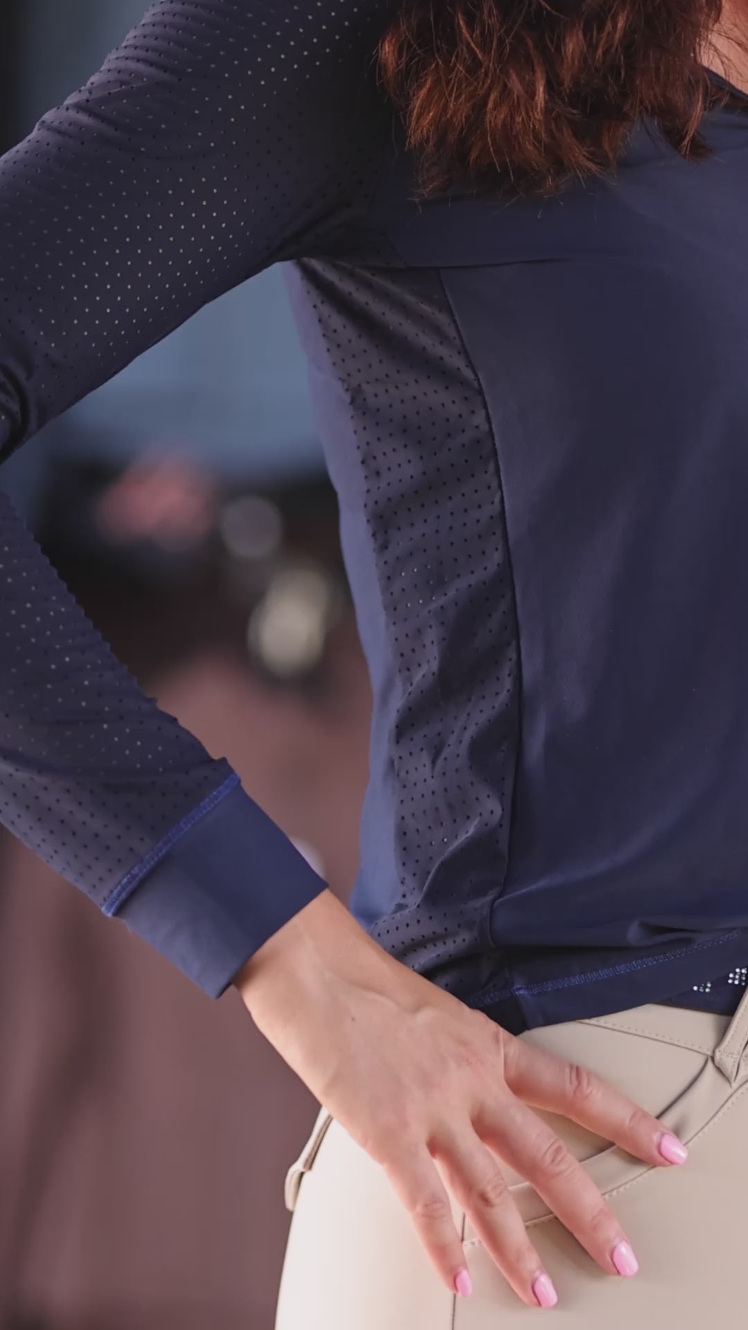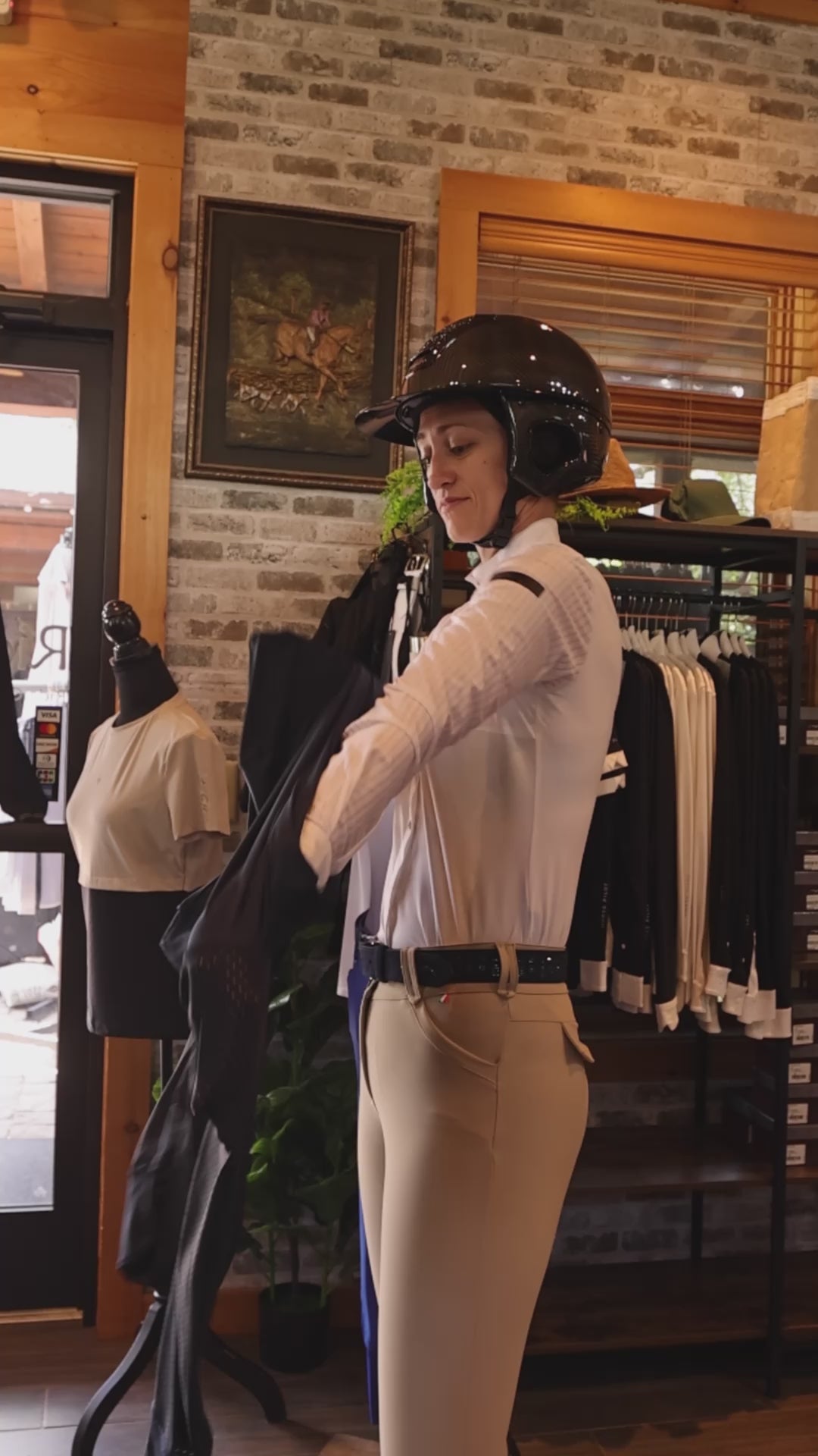 Wear it as a standalone shirt, as a cover up for your show attire, or as a lightweight layer for crisp mornings. Enjoy the flexibility to put this shirt on or take it off without disturbing your helmet. A truly versatile and one of a kind design.