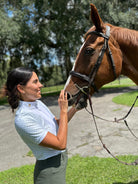 Make a statement in the show ring with the Helen Show Shirt Print. This competition top features a stylish slim-fit design and a beautiful, eye-catching print for a look that's both sophisticated and fun. The soft print adds a touch of personality without compromising on elegance. Long sleeves ensure optimal comfort throughout your ride, while the easy zip closure with one snap at the neck offers added coverage.