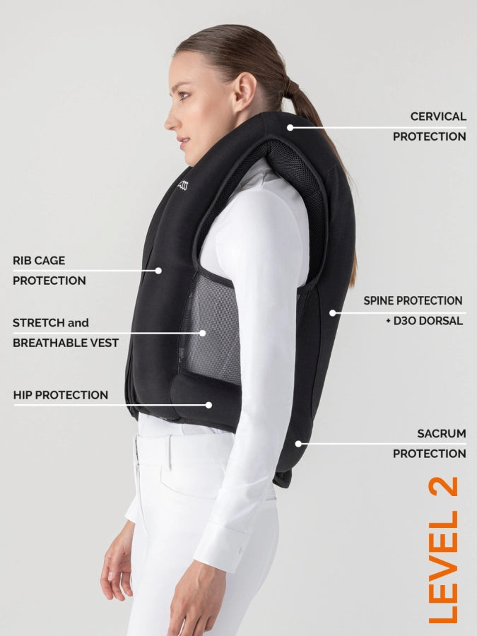 The new Belair L2 airbag vest takes protection to the next level thanks to the D30 Level 2 back protector, ensuring even more comprehensive safety for the rider while maintaining comfort and freedom of movement.