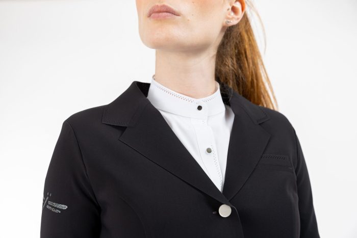 The Mona show jacket is made from a premium Italian technical fabric that combines silky softness and breathability. The double-layered fabric includes an abrasion-resistant polyamide base that limits odors and bacteria, while the elastane with Xtra Life Lycra technology offers exceptional flexibility.