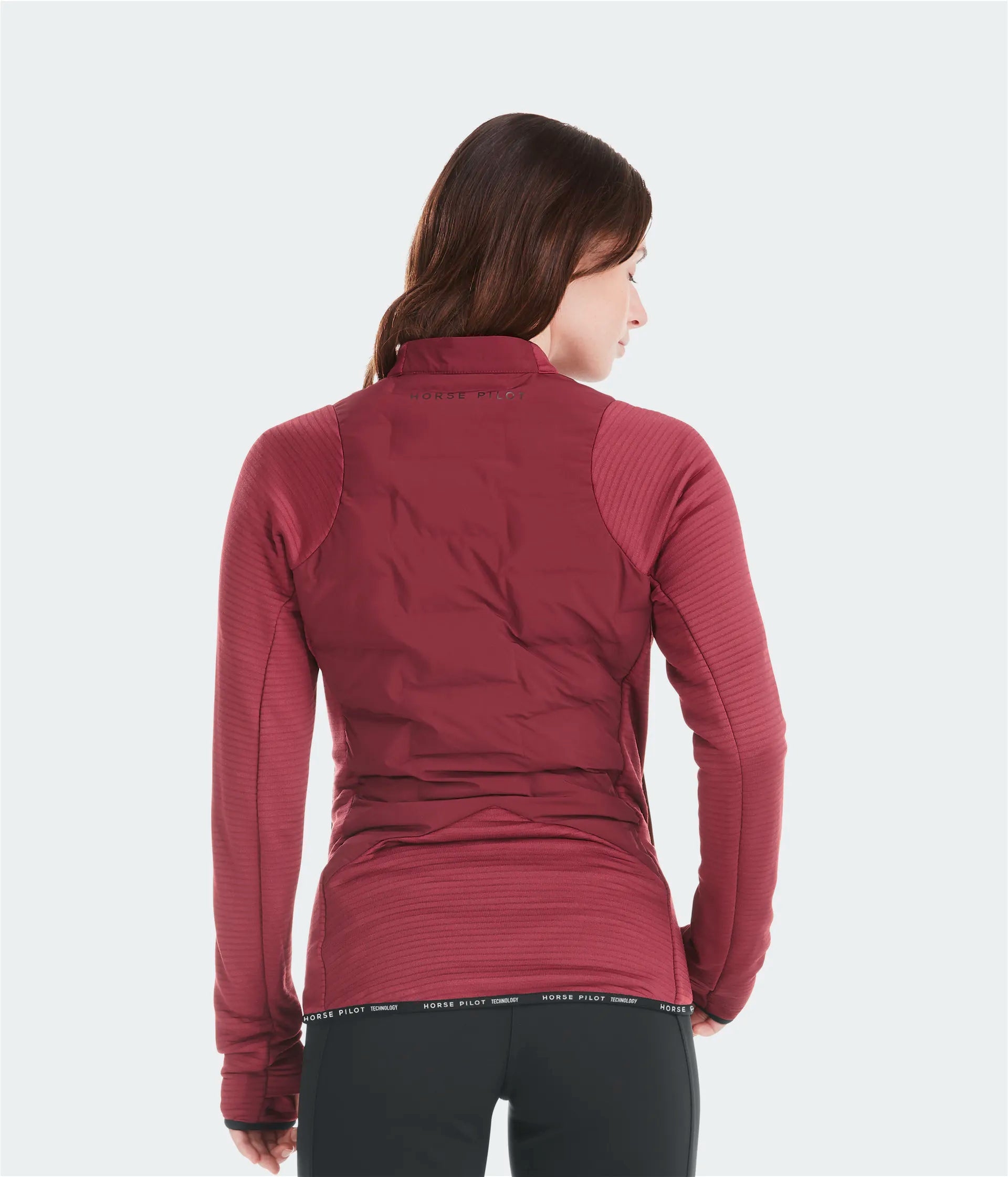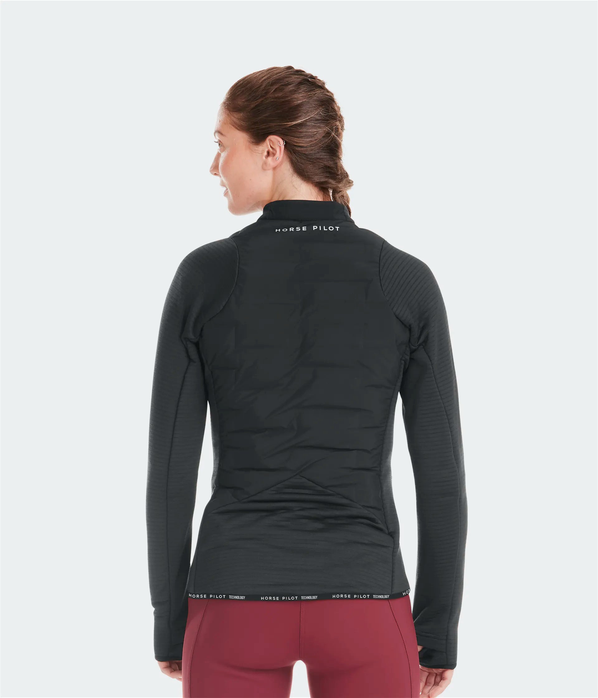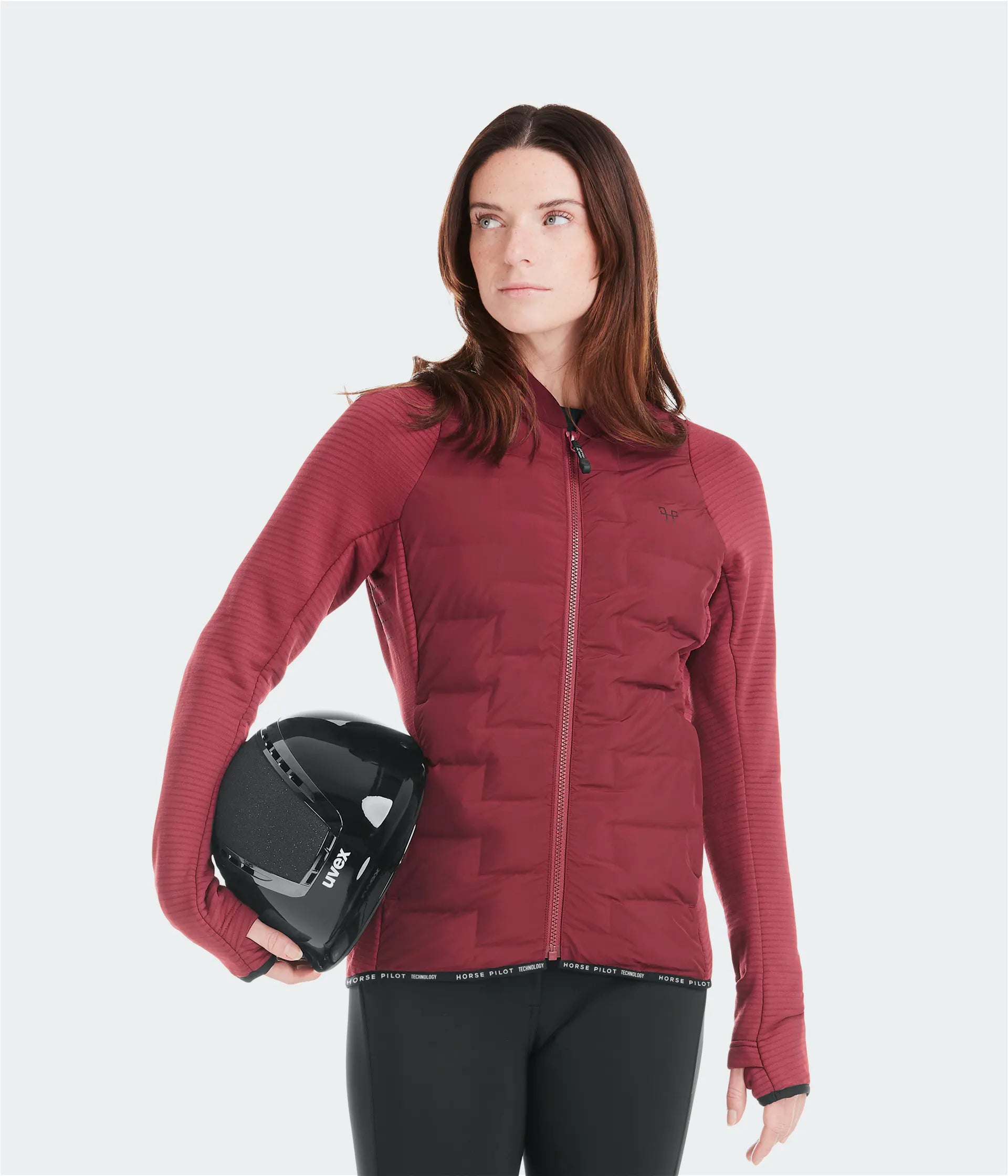 With the mix of quilted and fleece panels, the Storm jacket is the perfect middle ground between breathability and warmth. Pre-baffle panels on the chest and back provide warmth based on the body’s needs. This technique is achieved by weaving, which keeps air from penetrating the material. A lightweight, highly breathable fleece mesh on the sleeves, sides and lower back provides optimal comfort. Laser perforations on the sides increase the jacket’s breathability. And because eco-friendly design is a core value for us at Horse Pilot, we have chosen responsible materials: fleece made of recycled yarn, pre-baffle OEKO-TEX 100® certified with a DWR treatment that is guaranteed PFC free.