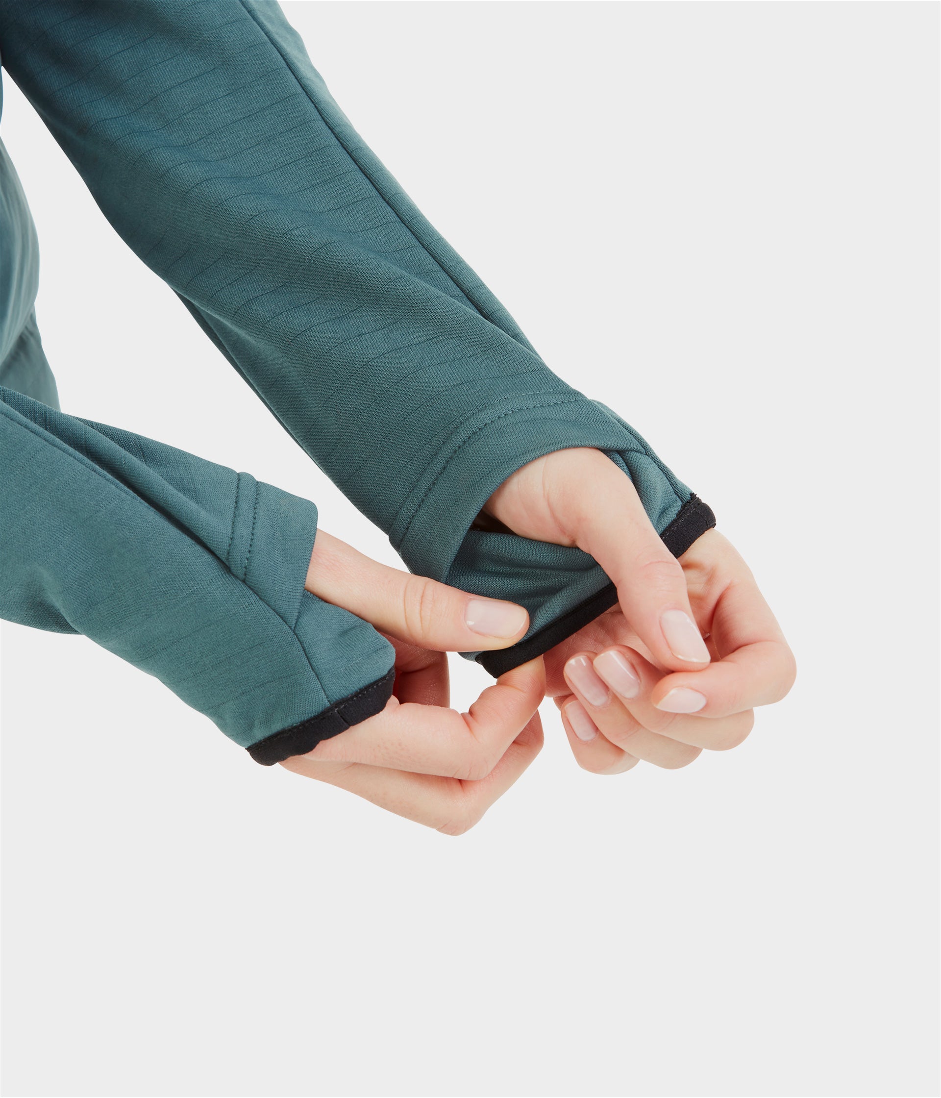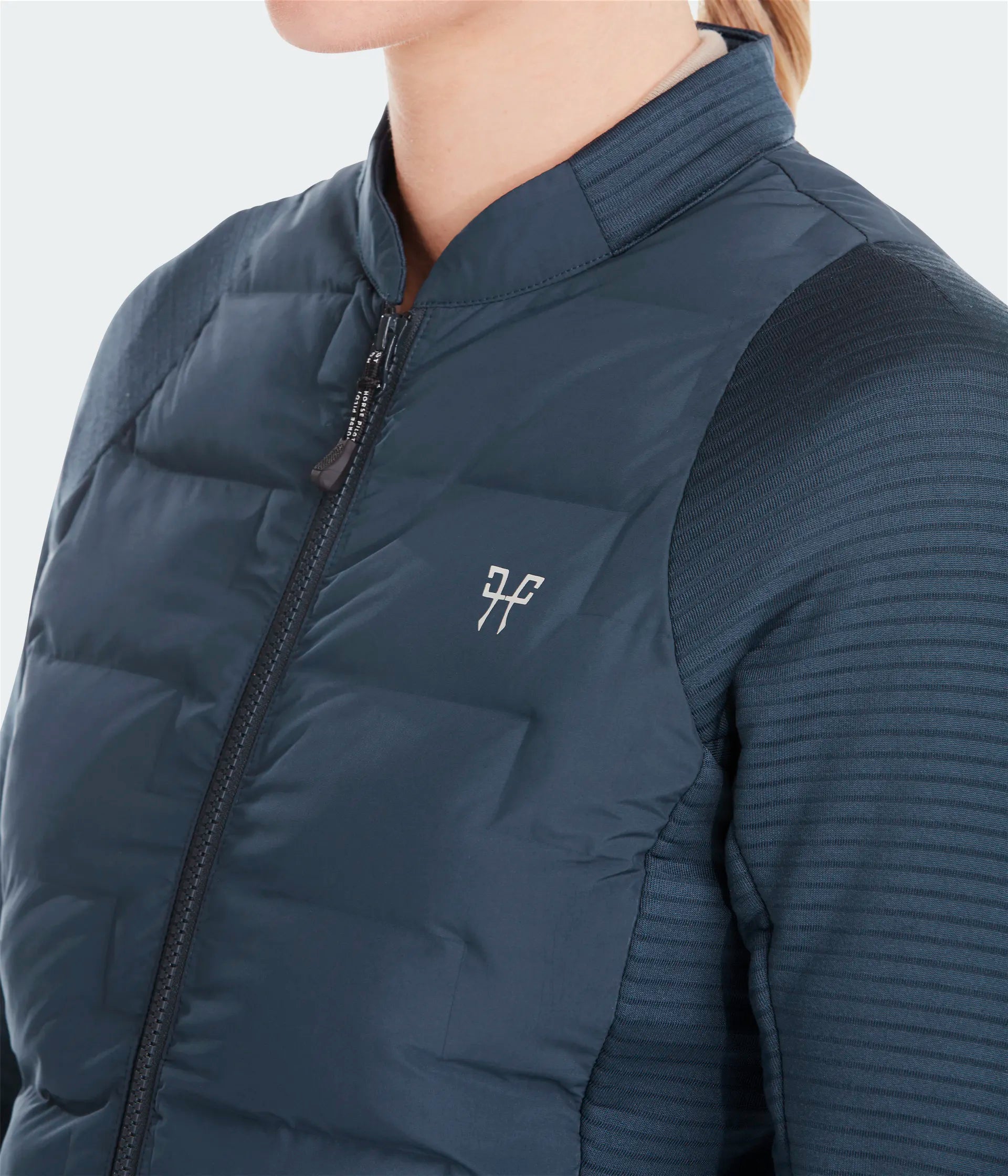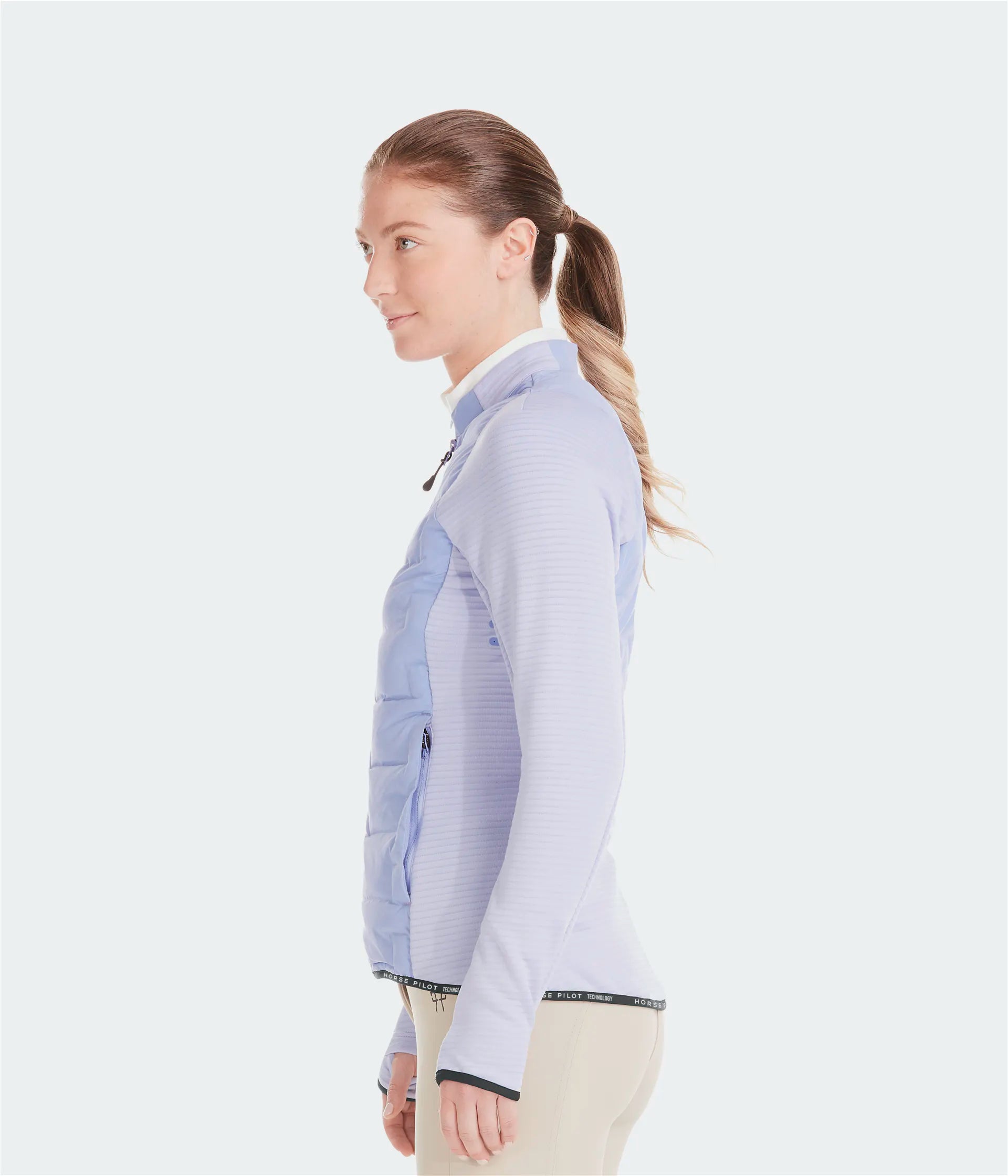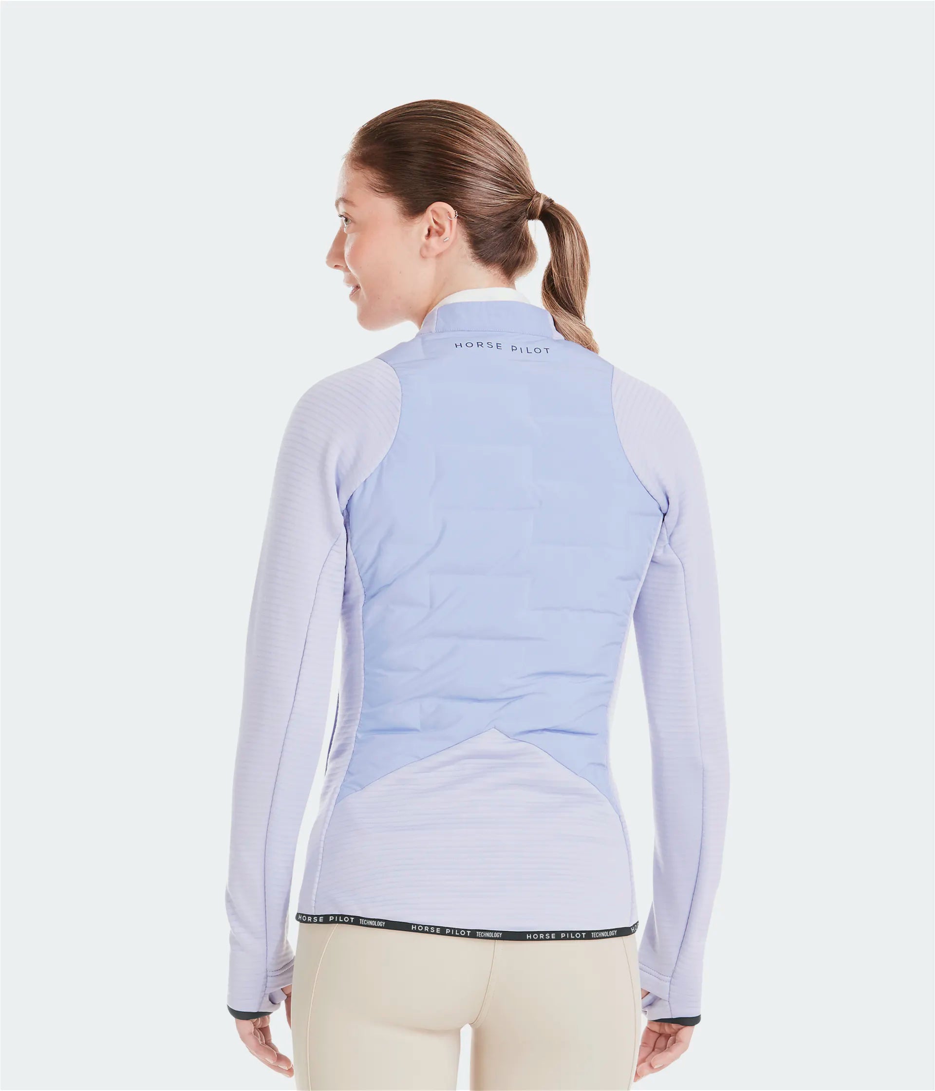 With the mix of quilted and fleece panels, the Storm jacket is the perfect middle ground between breathability and warmth. Pre-baffle panels on the chest and back provide warmth based on the body’s needs. This technique is achieved by weaving, which keeps air from penetrating the material. A lightweight, highly breathable fleece mesh on the sleeves, sides and lower back provides optimal comfort. Laser perforations on the sides increase the jacket’s breathability. And because eco-friendly design is a core value for us at Horse Pilot, we have chosen responsible materials: fleece made of recycled yarn, pre-baffle OEKO-TEX 100® certified with a DWR treatment that is guaranteed PFC free.