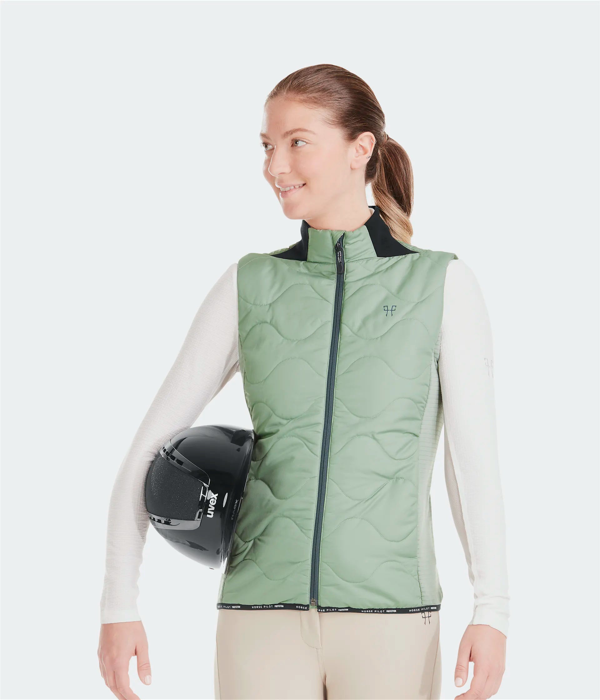 THE RIDER VEST IS BOTH LIGHT AND WARM AND CAN BE WORN ALONE OR UNDER A PROTECTIVE JACKET, ALL YEAR ROUND