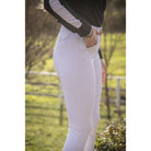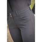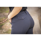The Élégance Breeches feature a row of rhinestones on the waistband and along the front and back pockets. A little Penelope horse, also in rhinestones, sits in the middle of the left thigh. These comfortable stretch breeches have non-slip reinforcements on the inside of the knees and a slightly high, close-fitting waist. The lower leg is made from Lycra to adapt to a wide range of body shapes. A very pretty, feminine piece that is comfortable to wear and sure to cause a sensation during horse shows.