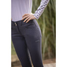 The Fun Stone Breeches feature a slim-fit, low-rise cut that provides excellent support. They beautifully enhance the rider’s silhouette with a flattering push-up effect. These breeches are equipped with two back pockets and two front pockets adorned with a row of girly rhinestones. They close with two press-stud buttons engraved with the Pénélope logo and a discreet zipper. The bottom of the legs is made of black lycra for a perfect fit that adapts to all leg sizes.