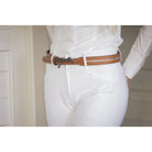 The Signature Strass Leather Belt from Pénélope Collections features a sleek silver sliding buckle in the shape of the iconic Pénélope logo. A fine line of sparkling strass runs through the center of the leather, adding a subtle touch of elegance. Stylish and versatile, this belt pairs perfectly with breeches or everyday outfits.