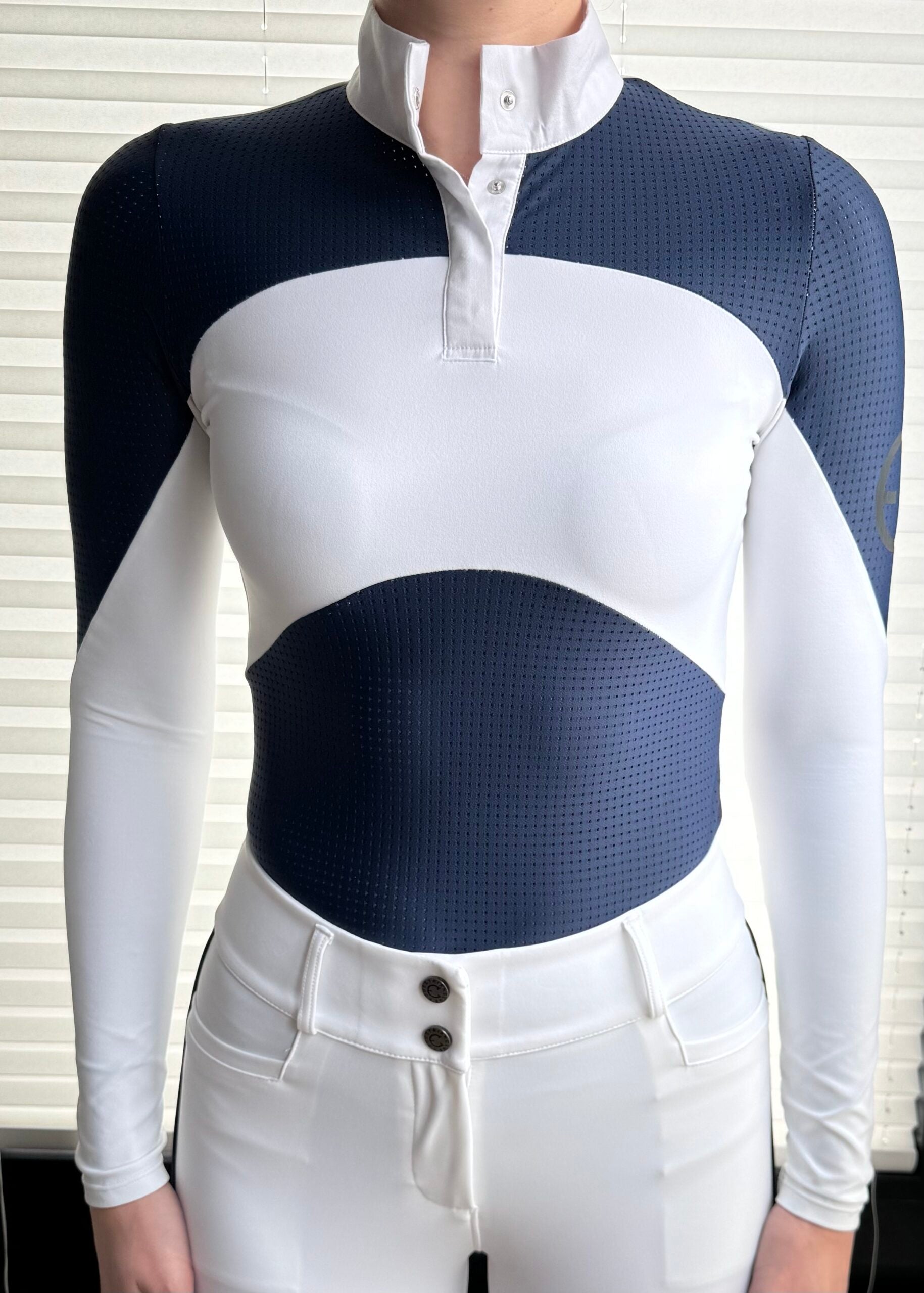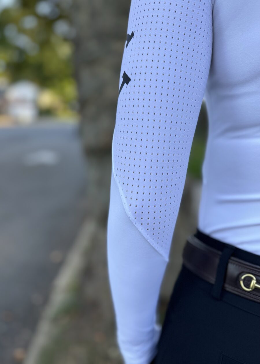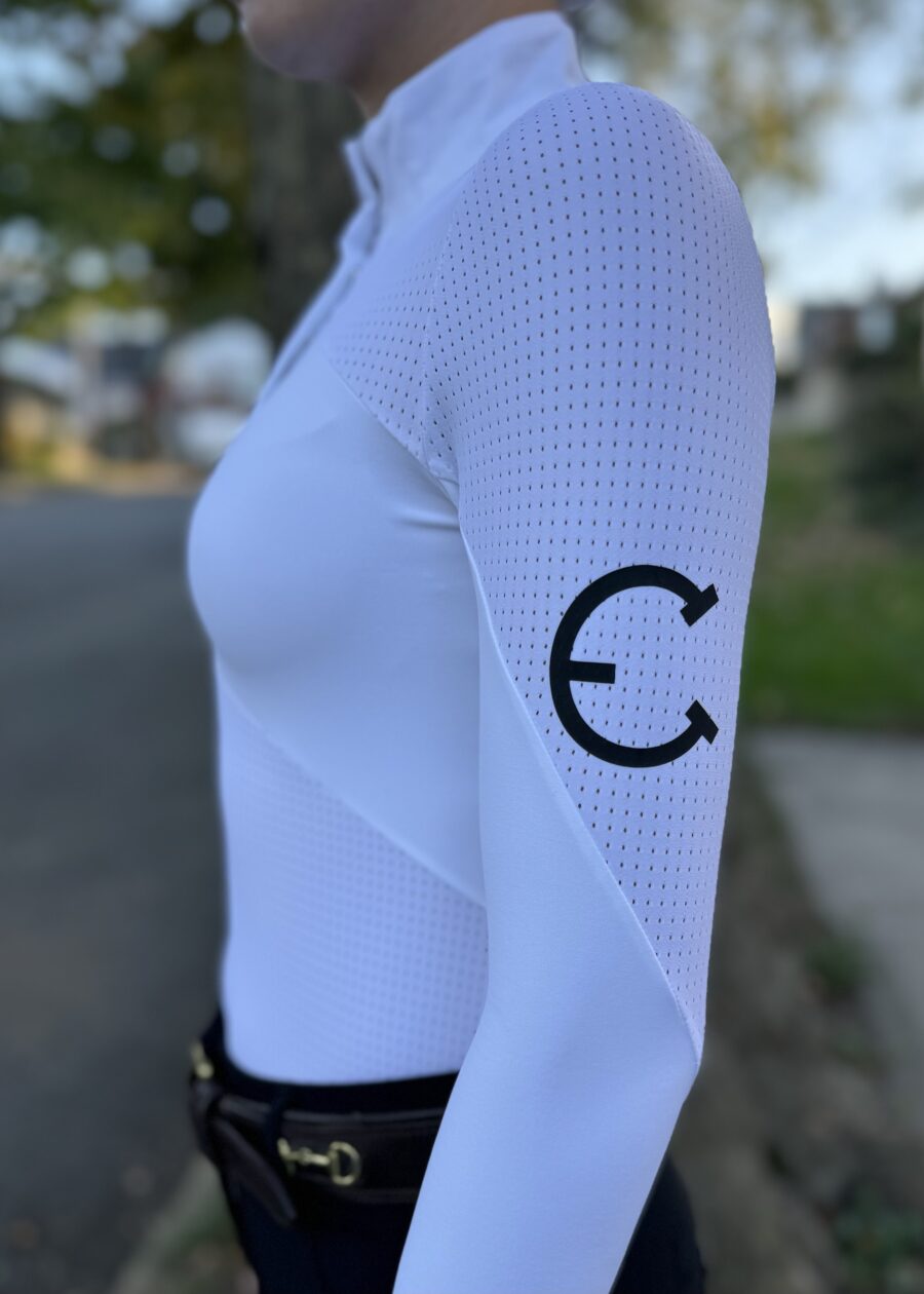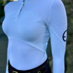Our elegant shirt AVA has it all, unique design (as all of our shirts do), feminine fit that flatters and looks beautiful beneath a show jacket. Comfortable and very breathable construction of this shirt with sun protection fabric will be your next favorite one from EQUESTRIANCLUB!