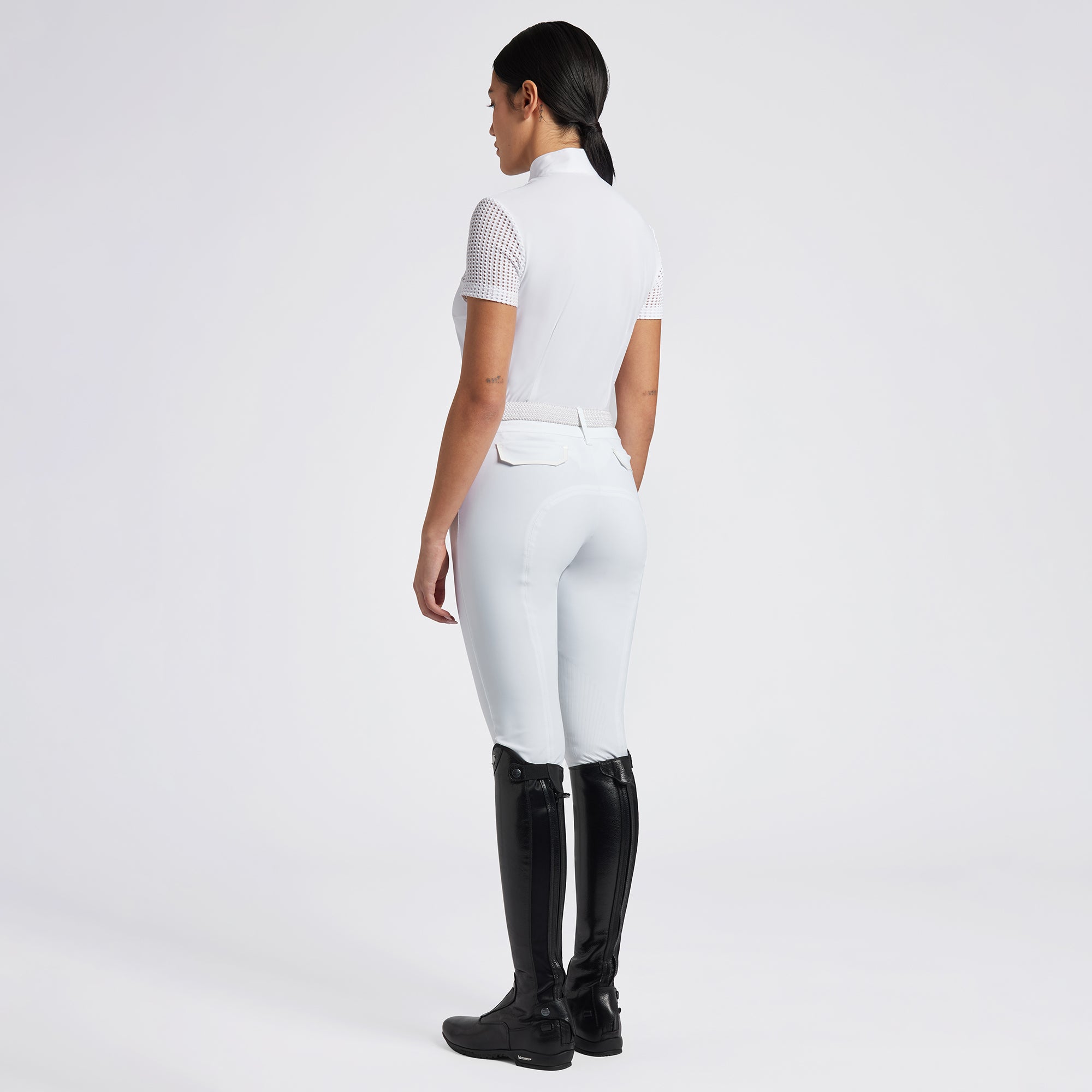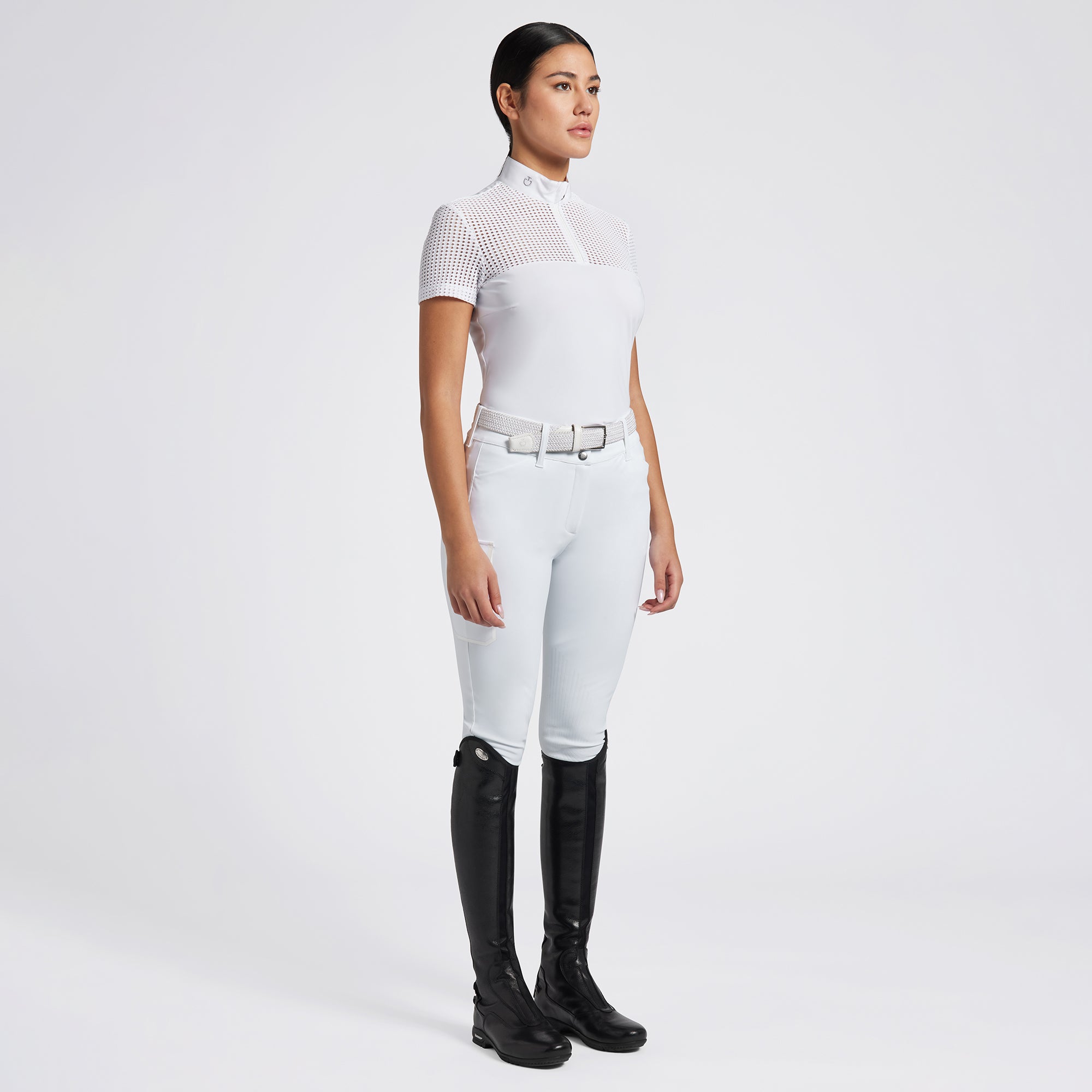 Women's Perforated Competition Shirt from Cavalleria Toscana has a sporty contemporary look that flatters. The material is wicking, fast drying, and odor inhibiting for summer freshness and comfort.