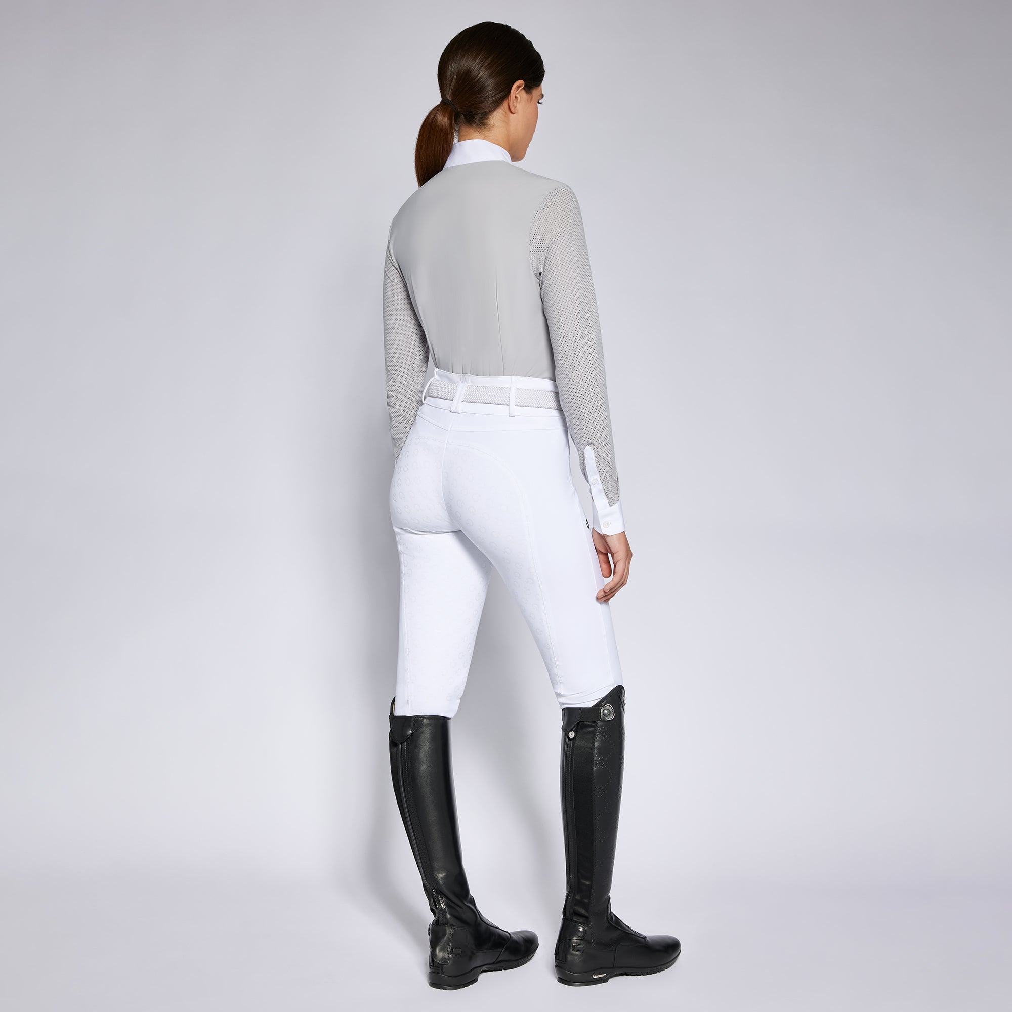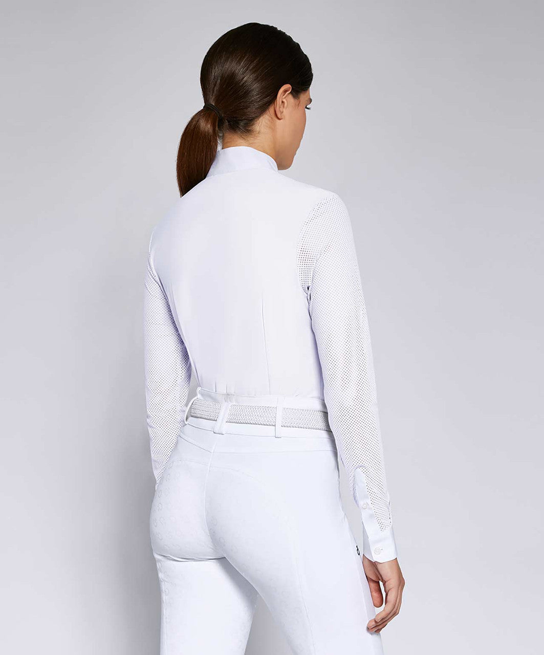 Crafted from perforated jersey fabric, this shirt goes beyond the ordinary, providing exceptional breathability. Stay cool and comfortable, even in the heat of the most intense competitions. Elevate your performance and make a statement with this must-have addition to your equestrian wardrobe.