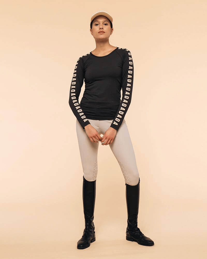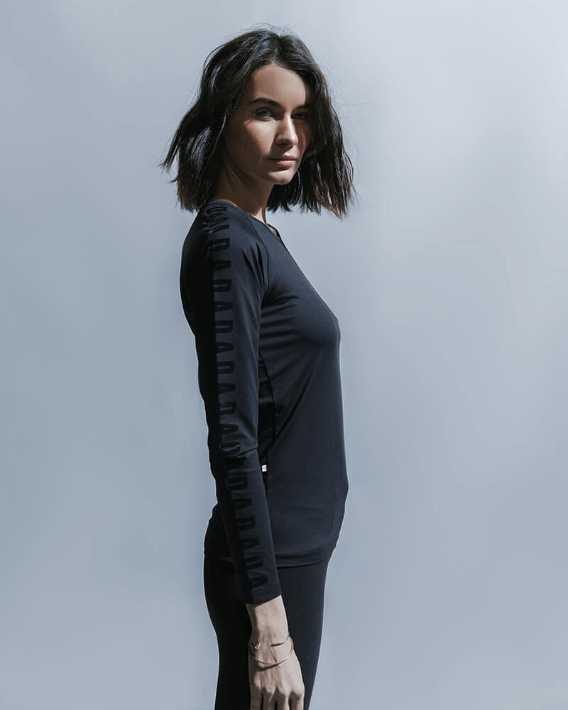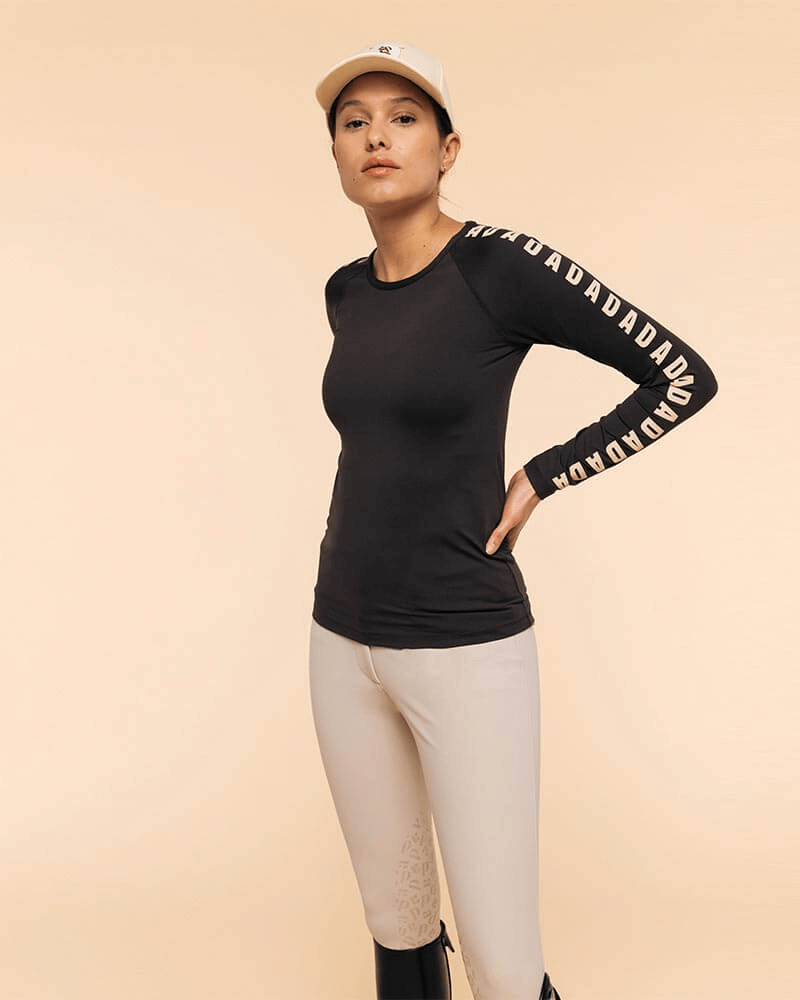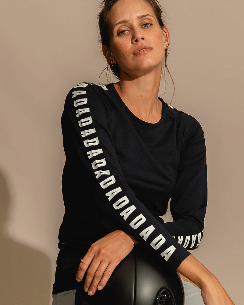 - Light and stretch fabric- “DADA” print in repetition along the sleeve.