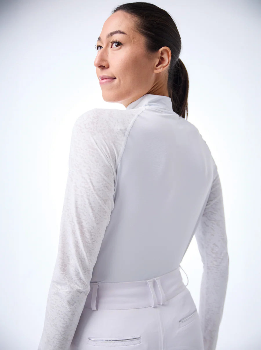 Experience superior performance in any season with the Sport Mock in micro mesh with stretch lace sleeves. This perfect transitional piece is made from the highest quality wicking mesh fabric, in an ultra-soft blend of nylon and spandex to keep you dry and comfortable year-round. It's the perfect shirt for any activity. This mesh is light but not transparent.