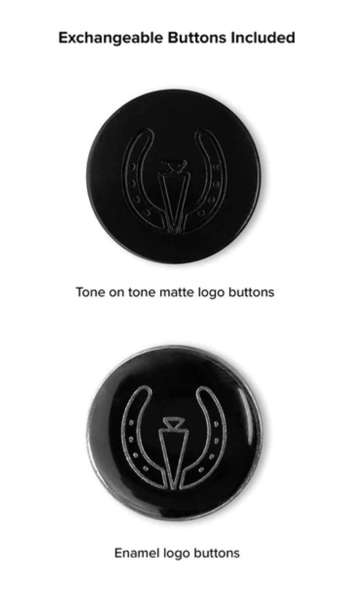 - Comes with two sets of exchangeable buttons; choose from enamel logo buttons or more subtle tonal matte logo buttons