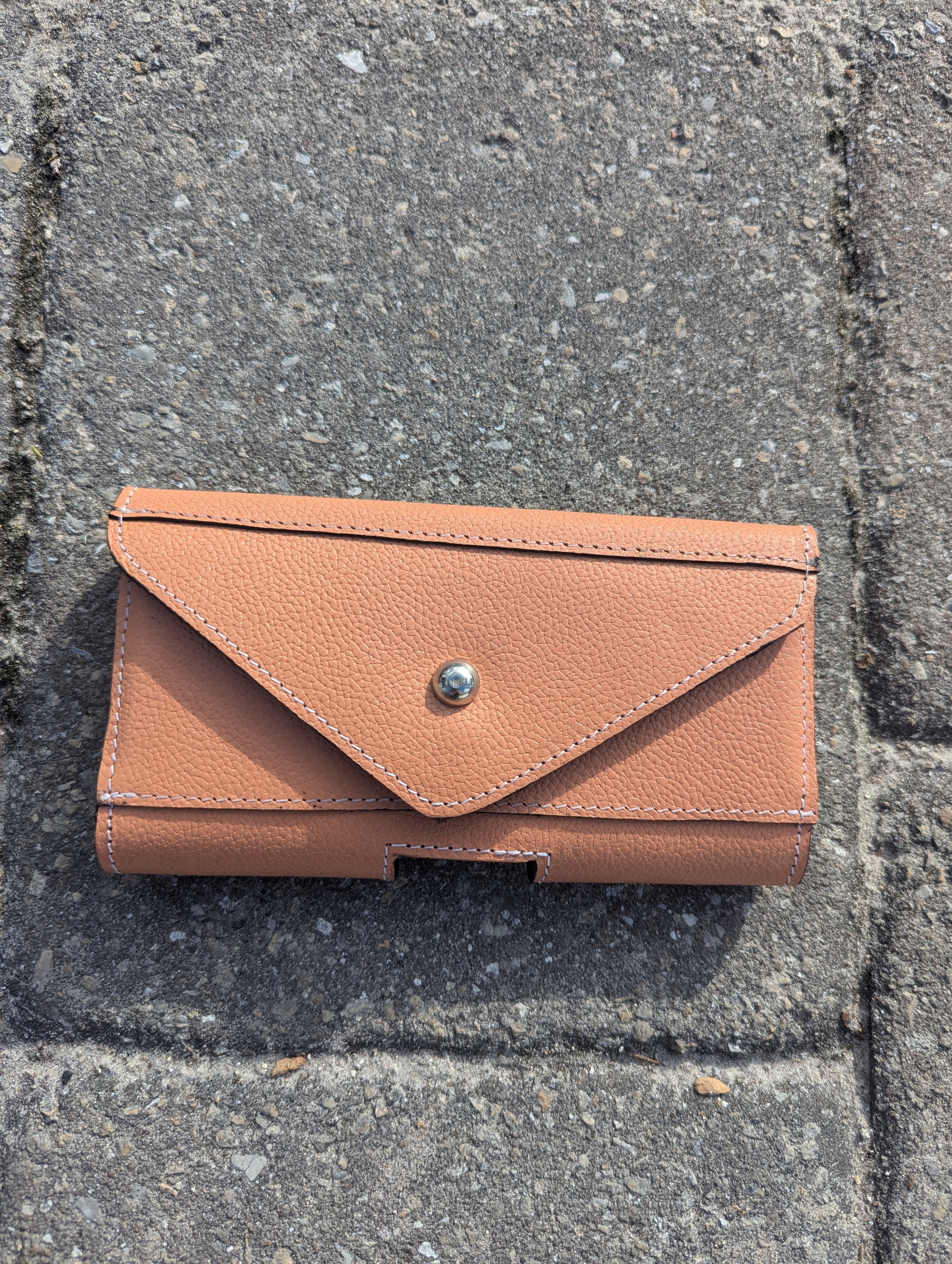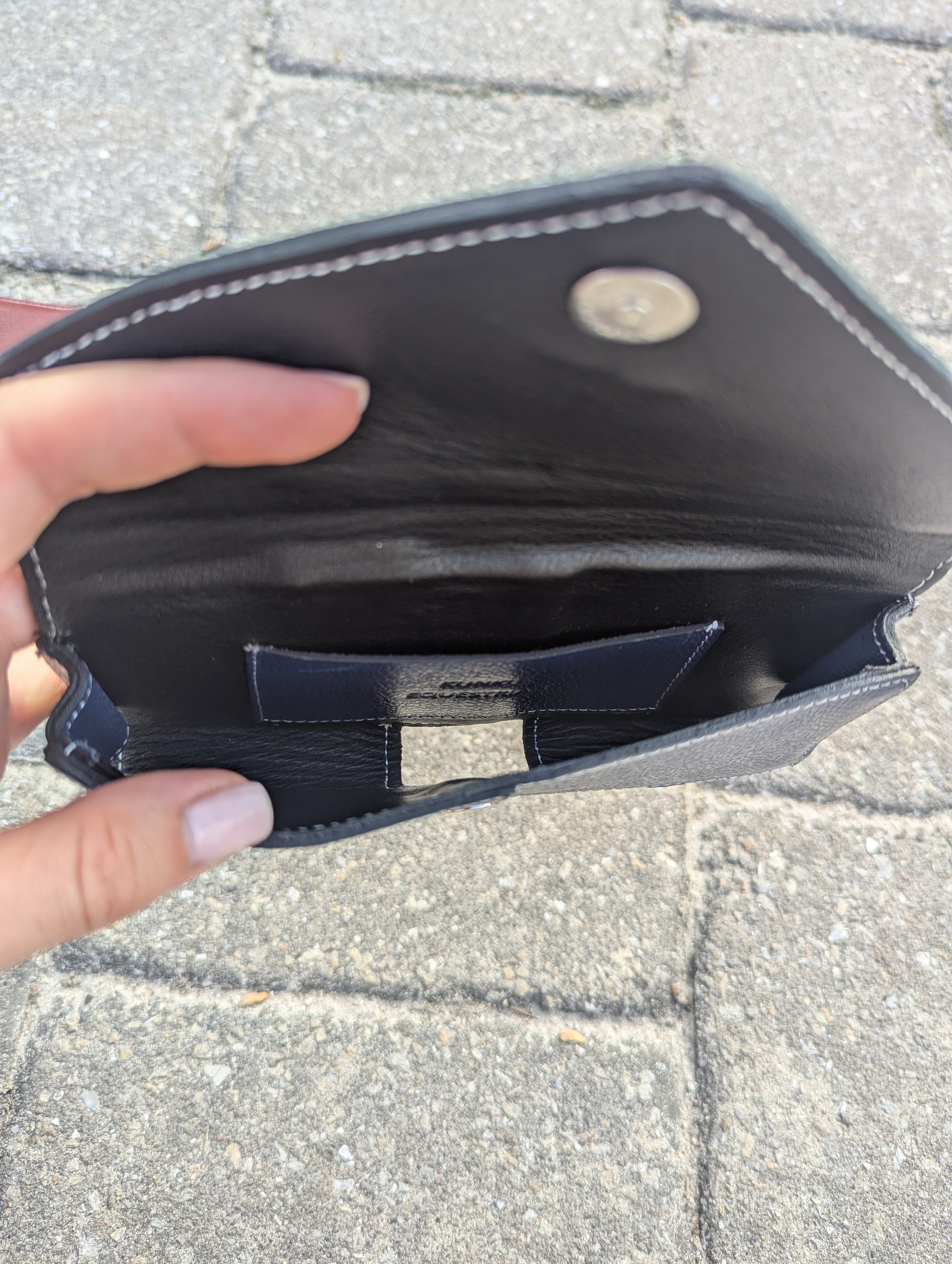 The Kunkle Phone Case is expertly crafted from premium, vegan leather material that boasts durability and style. Along with a convenient belt attachment, this case features a bottom opening for effortless phone removal and an inside card pocket for added functionality.