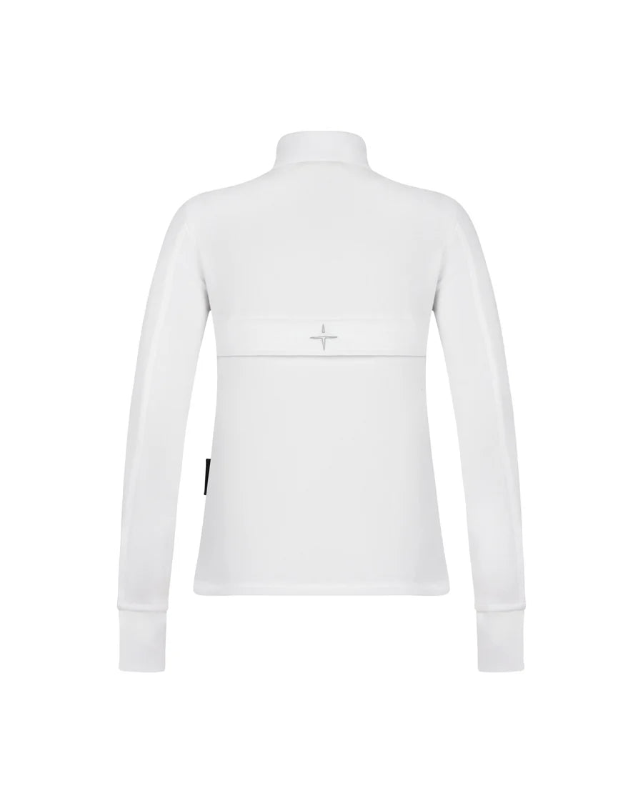 An activewear essential for outdoor activities, this sweatshirt is made from soft micro fleece. The plush material offers breathable warmth and everyday comfort. It features a half zip, high collar, and thumbhole cuffs in stretch technical jersey for added coverage and mobility.
