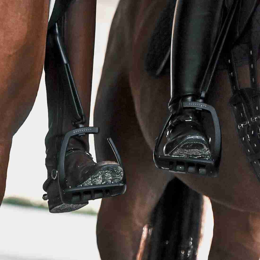 Discover Ryde adjustable stirrups, designed for optimal angle adjustment to improve rider comfort and horse anatomy fit.