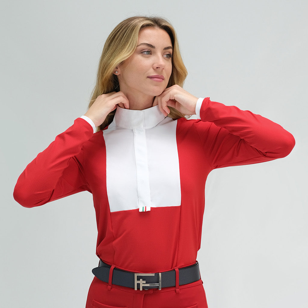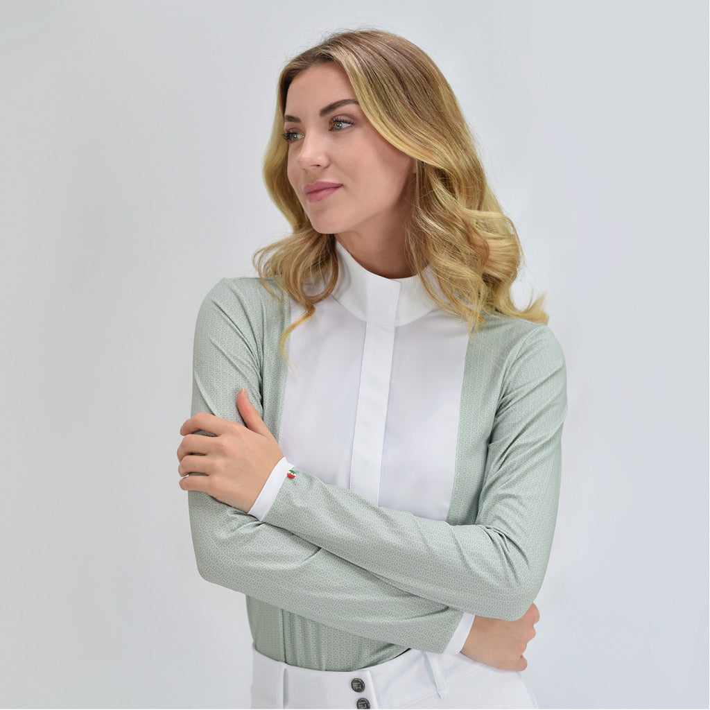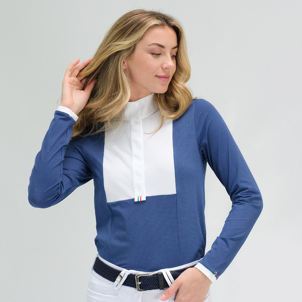 ALIYAH combines an innovative and modern fabric with a classic equestrian style in an elegant, comfortable long-sleeved competition show shirt. Suitable for all seasons thanks to its breathability, silky moisture-wicking feel, and UV protection.