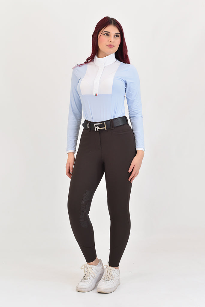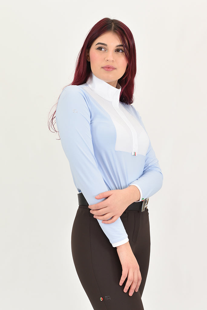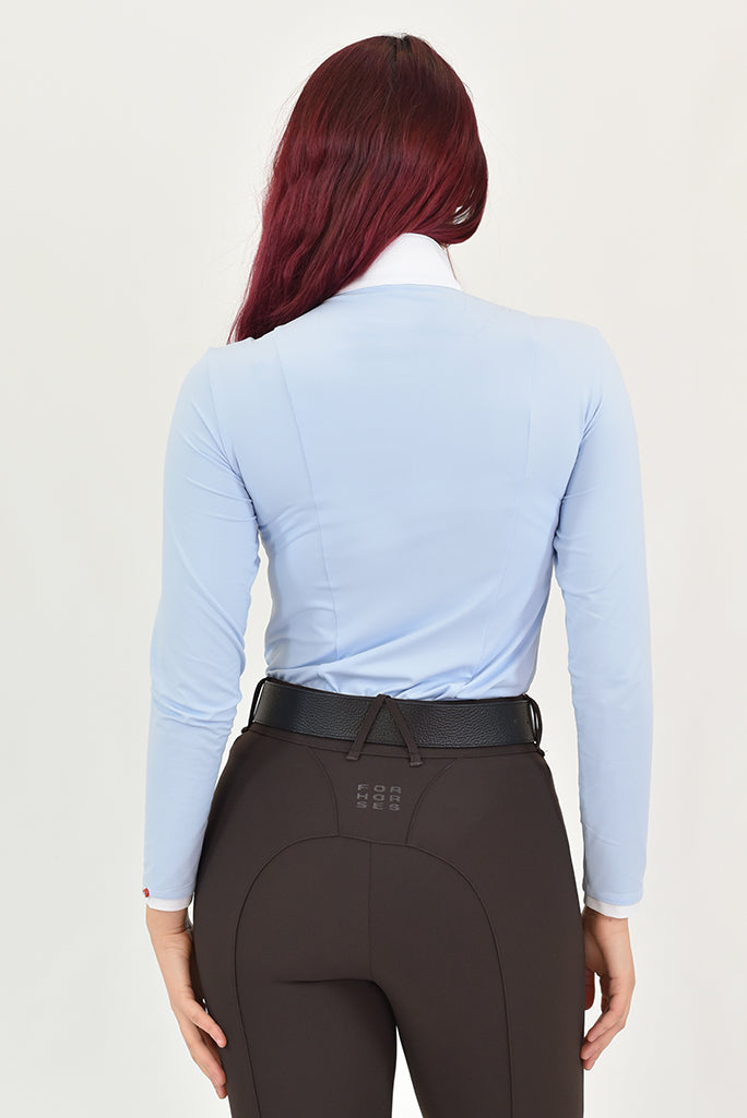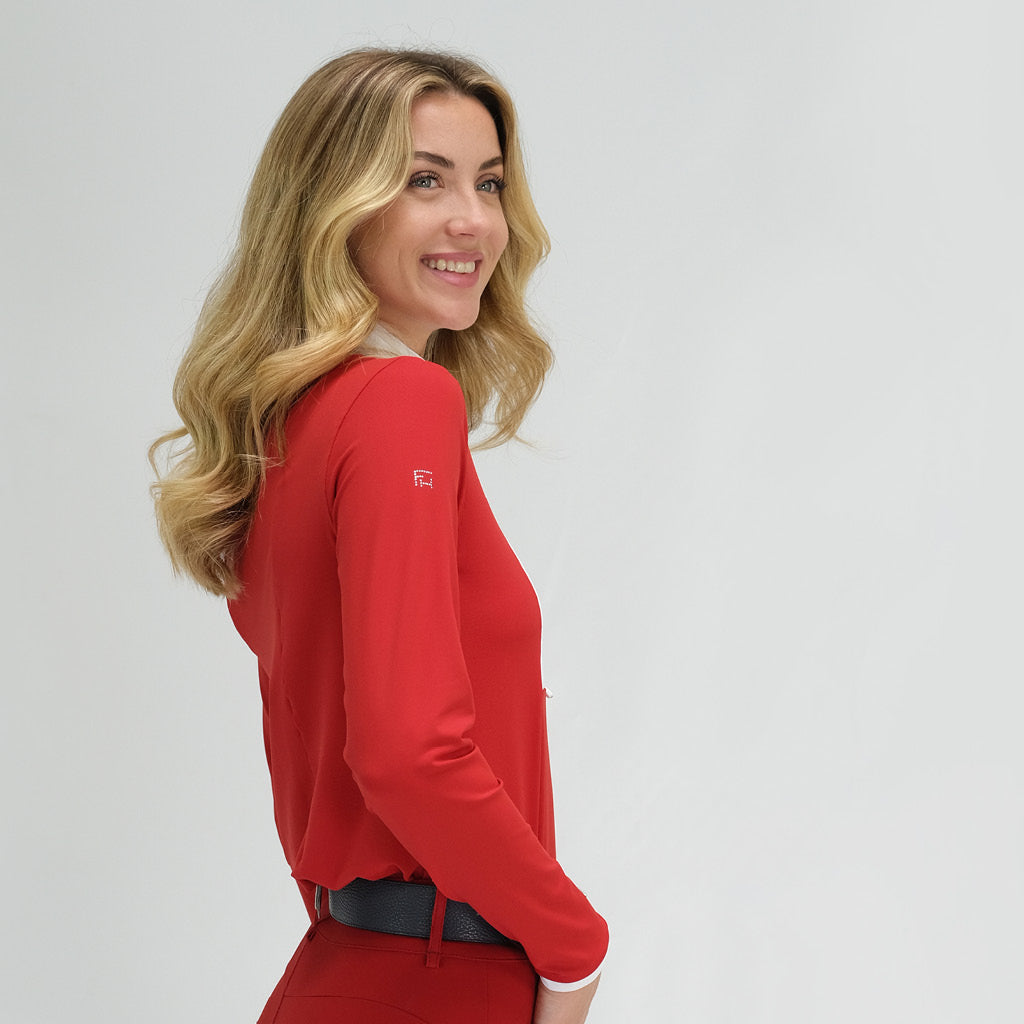 ALIYAH combines an innovative and modern fabric with a classic equestrian style in an elegant, comfortable long-sleeved competition show shirt. Suitable for all seasons thanks to its breathability, silky moisture-wicking feel, and UV protection.