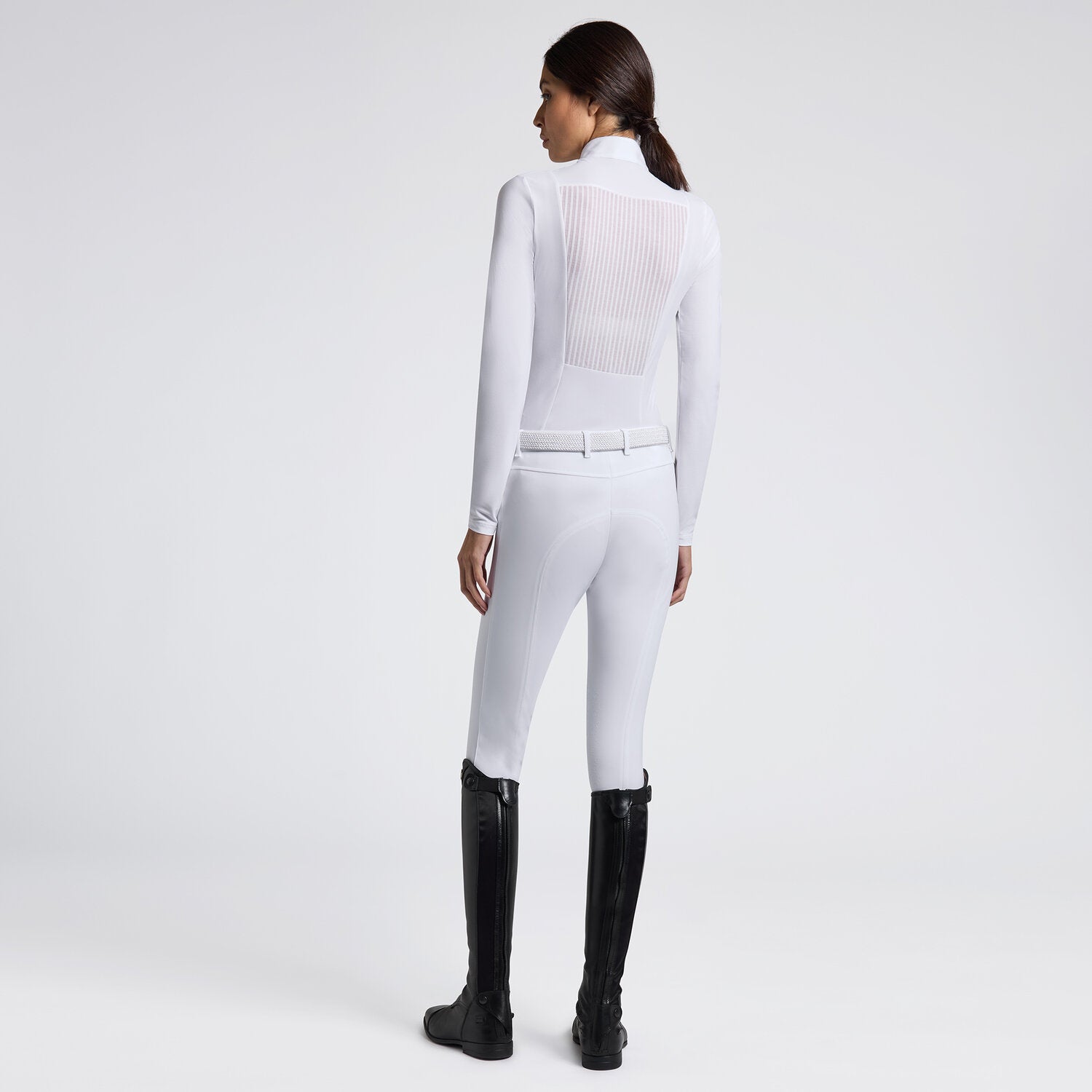 Cavalleria Toscana long-sleeve competition shirt for girls, made of warm jersey with jacquard insert on the back and classic poplin collar.