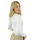 Simple and chic - The Maeve Shirt is what you need for everyday. Whether you are riding or grazing your horse, the Maeve Shirt will keep you cool and comfortable. The mesh accents on the back allow for airflow to the body... and style, of course. Available in Jet Black, White, Sage, Lilac, Mulberry, and Graphite Grey. The Maeve Shirt is made from 85% Polyester, 27% Spandex.