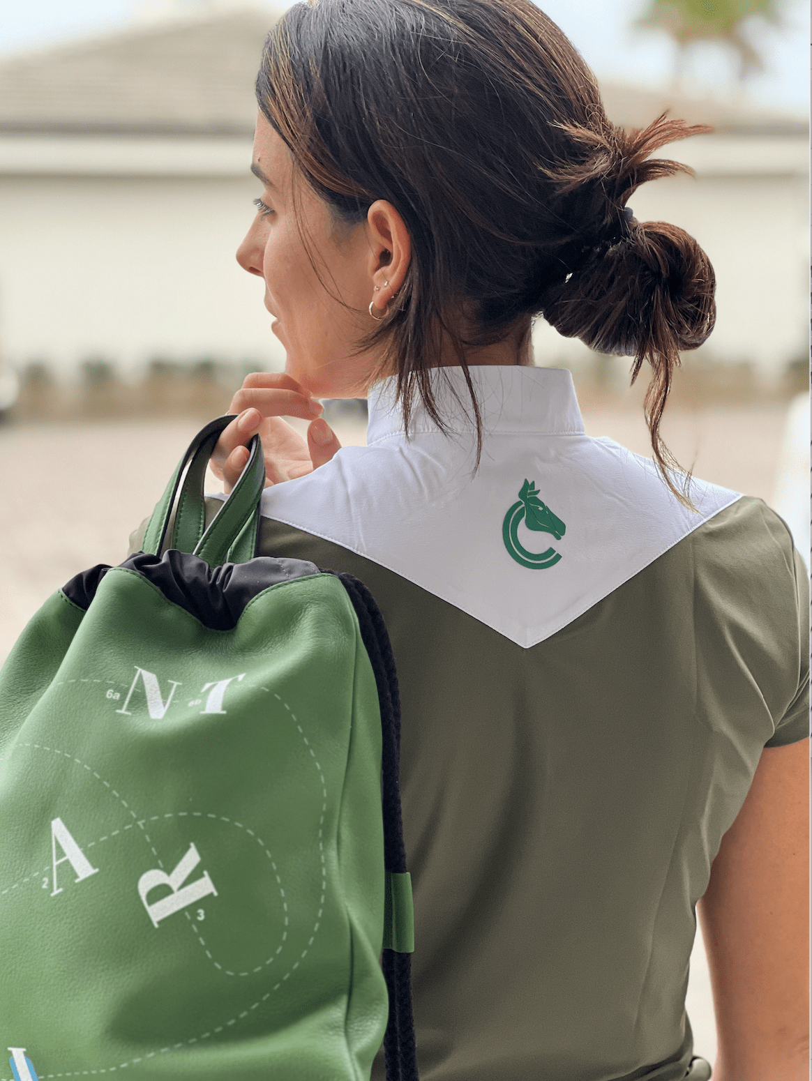 Bold yet polished, the Margot in Olive Green brings a modern edge to your show-day look with its earthy tone and crisp white contrast.