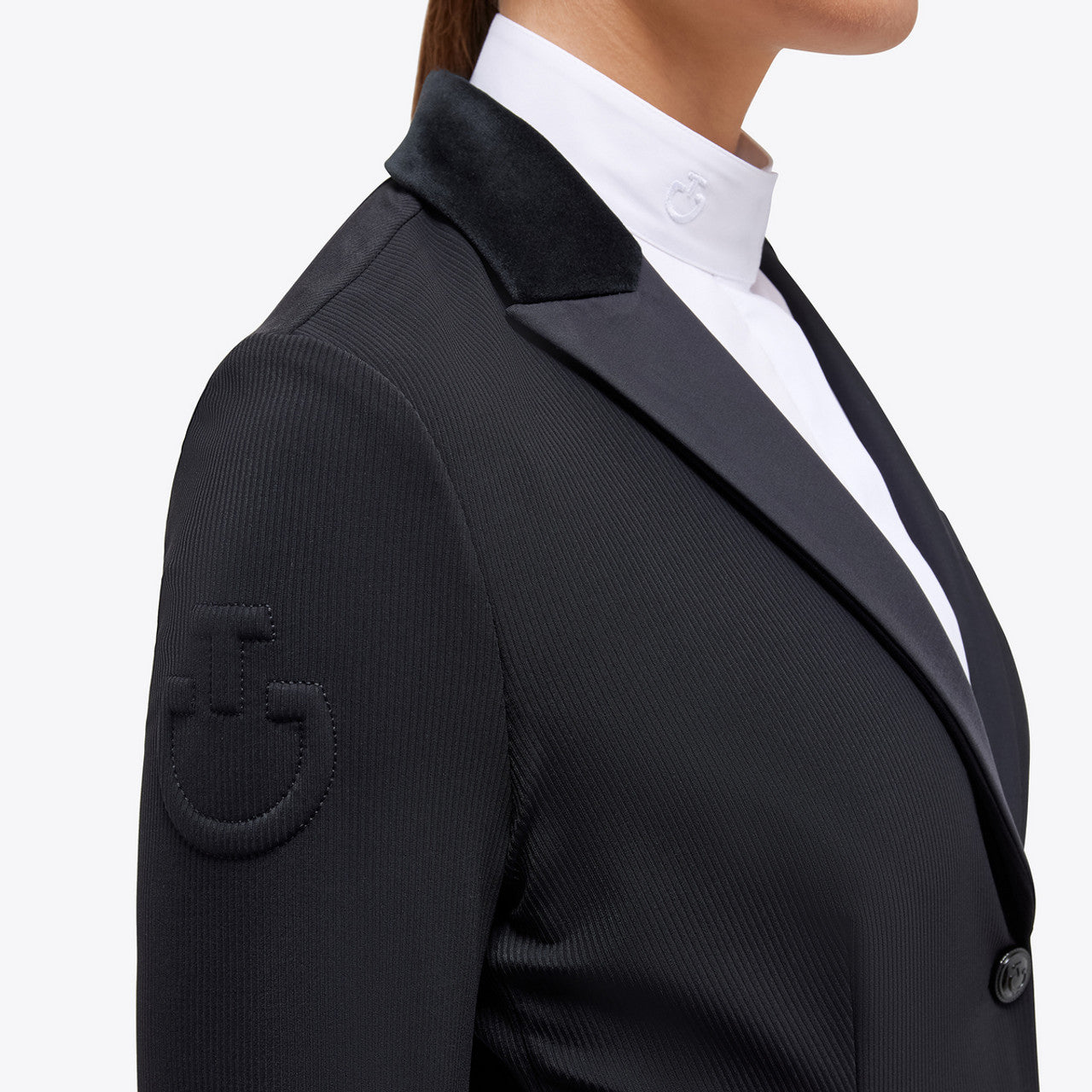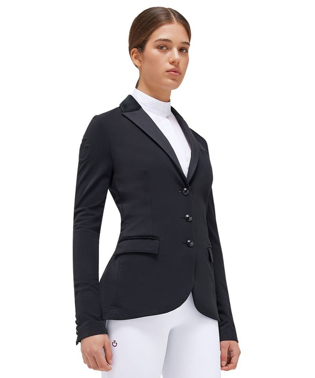 Cavalleria Toscana Smoking Jacket is not for smoking, but it's definitely smoking all the same! The classic riding jacket for women is made from technical 4-way stretch jersey with a slight texture that adds a gorgeous, upscale element. The CT Smoking Jacket is both high performing and elegant with signature CT details.