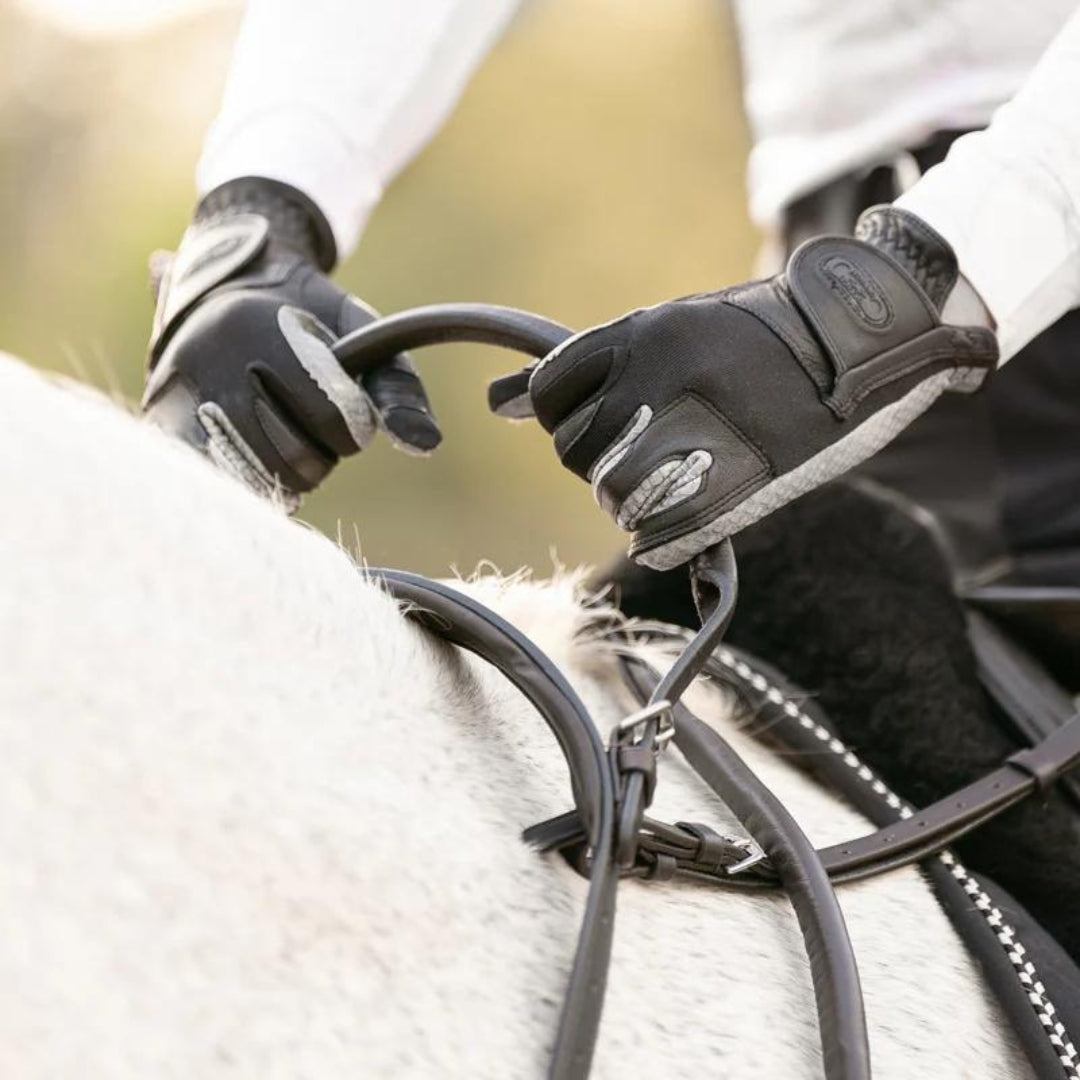 The Double Neck Strap is fully adjustable and snaps onto both of the saddle D-Rings to conform to FEI rules and customize it to fit the horse and rider. Straps may be altered and trimmed to fit based on riding style and horses conformation.