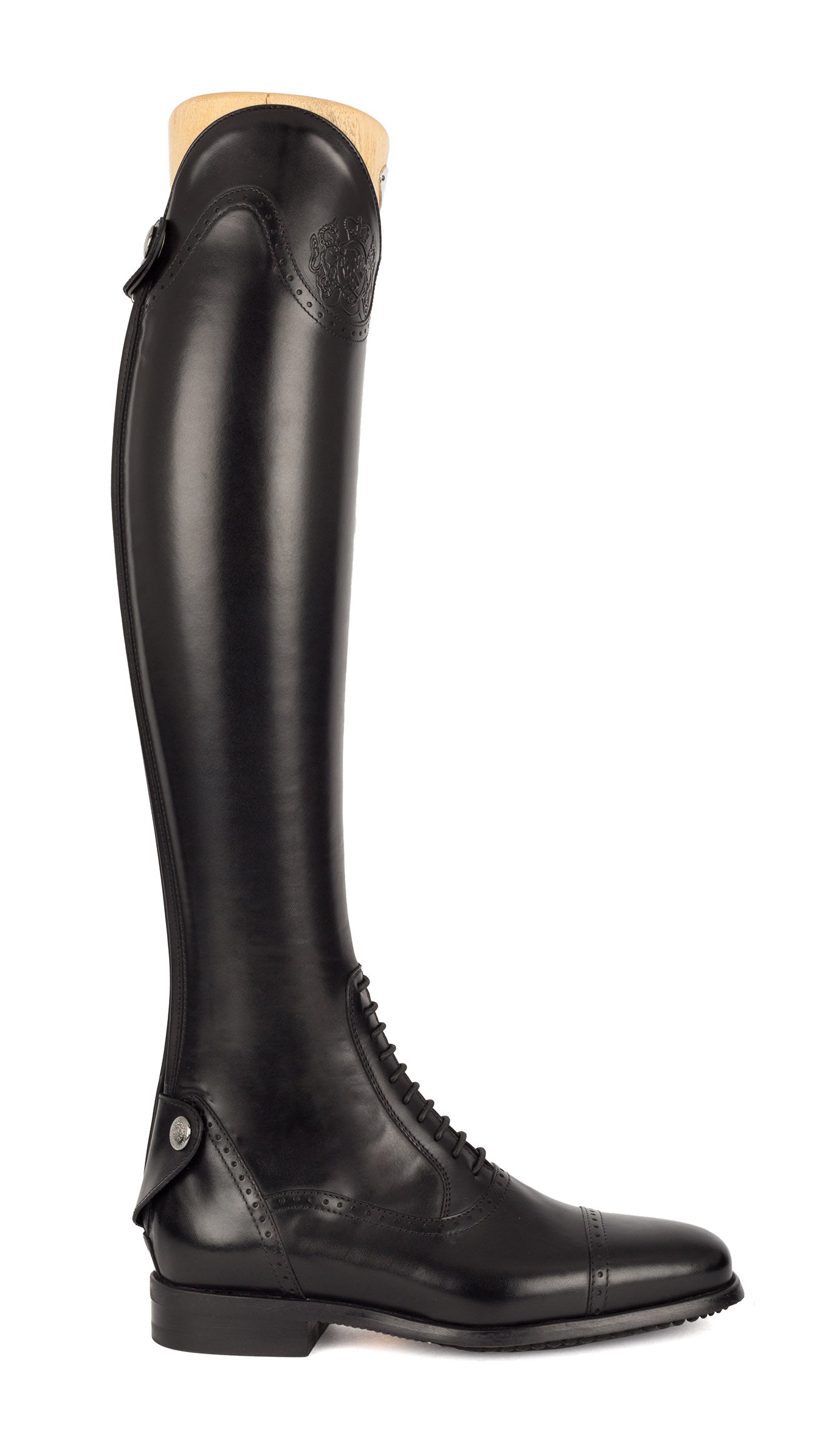 Inspired by the classic Oxford style, Alberto Fasciani's 33604 is a very technical jumping boot made in a brushed calfskin leather. It features a rear zip and elastic laces on the instep. The inner part is in a special elastic textile and elastic grip for a better fit. Finished with an ornamental brogue and logo embossed on top of the leg.