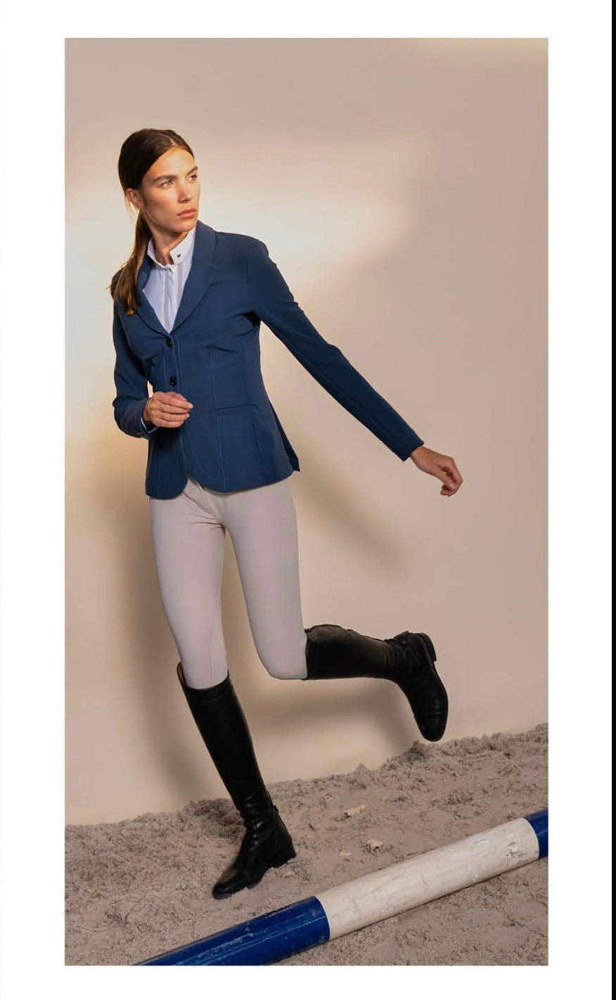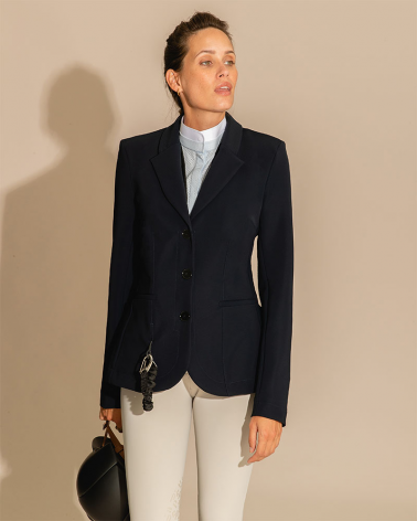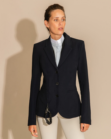 Fitted show jacket, with a refined, elegant and timeless design. Tzara is the new Dada Sport competition jacket with thicker fabric to look even more impeccable in the ring while remaining breathable and very stretchy. It has been developed as a tailor’s piece.