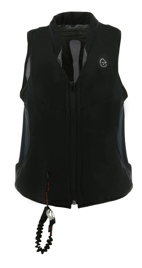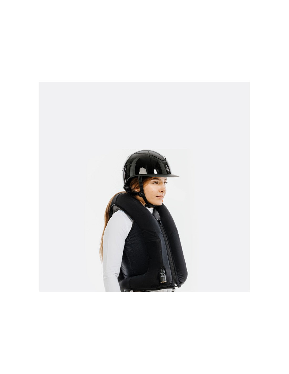 The EQUITHÈME AIRSAFE airbag is an airbag designed for equestrian sports. It is a slim fitting, flattering vest and does not require a body protector to be worn underneath.