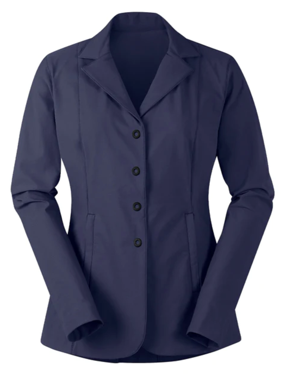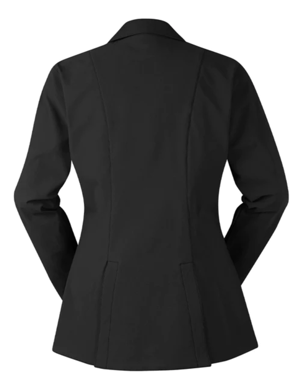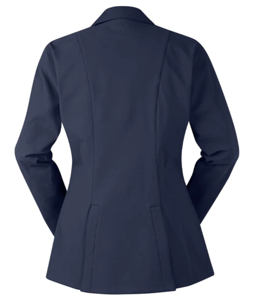 This all-season show coat may be the easiest thing about competing. Simply pull on an elegant, stain and weather-resistant silhouette that breathes and stretches in the saddle, then toss it in the wash for next time. No ironing. No worries. Strategic, contoured design flatters a range of body types. Hidden front zip with snaps stays smooth for a streamlined silhouette. Eyelets at waist secure riders’ number strings. Choose from 3 or 4-snap options.
