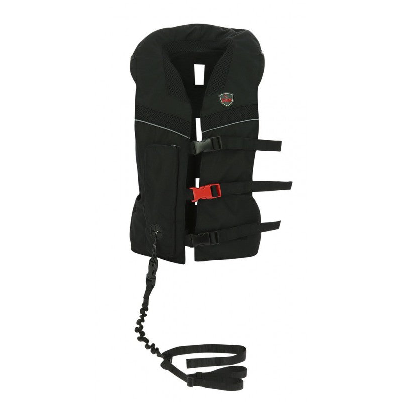 Can be worn on top of a CE EN 13158:2009 BETA Level 3 body protector. The airbag vest comes ready-to-use with a Spark cartridge, a lanyard and the attachment for the saddle. Manufacturer's warranty will be void if any other brand or wrong size cartridges are used. User liability will be automatically engaged if other brands or wrong size cartridges are used.